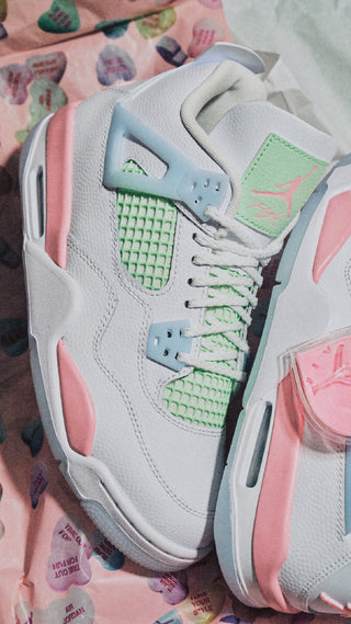 JORDAN 4 RETRO (PS) - WHITE / MEDIUM SOFT PINK / VAPOR GREEN