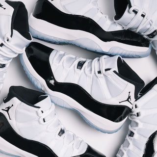 Next to the Air Jordan 1 "Bred", the Air Jordan 11 "Concord" is probably the most iconic shoe that the Air Jordan line has ever produced, becoming an instant classic for its revolutionary patent leather mudguard and luxurious aesthetic. Now the famous colorway is back in the exact form in which it first appeared on MJ's feet as he strode onto the court against the Orlando Magic for Game 1 of their 1995 second round playoff series. That means the shoe has a higher cut on the patent leather overlay and 45 stitched on the heel instead of the standard 23, due to the fact that Jordan debuted the shoe during the short time he wore number 45 on his jersey.