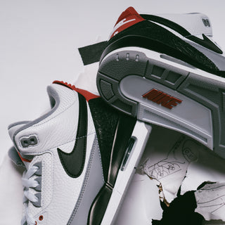 The Air Jordan 3 is, quite possibly the greatest Air Jordan silhouette ever made. But it didn't drop from the heavens fully formed, in fact Tinker Hatfield's original vision was a bit different than the iconic design that we know and love today. Now for the shoe's 30th anniversary, after a limited release in March, that initial sketch will finally be brought to life with the Air Jordan 3 Retro "Tinker". The shoe is mostly unchanged, built on a white tumbled leather upper with black, red and grey accents reminiscent of the "Fire Red" colorway. The uppers feature a large swoosh on the lateral side and embroidered NIKE branding on the medial side, both of which were removed from the final design. Tinker's signature is stitched behind each tongue, and the insoles contain a graphic of the original sketch. Nike Air branding on the heels add some OG authenticity and finish off the design.
