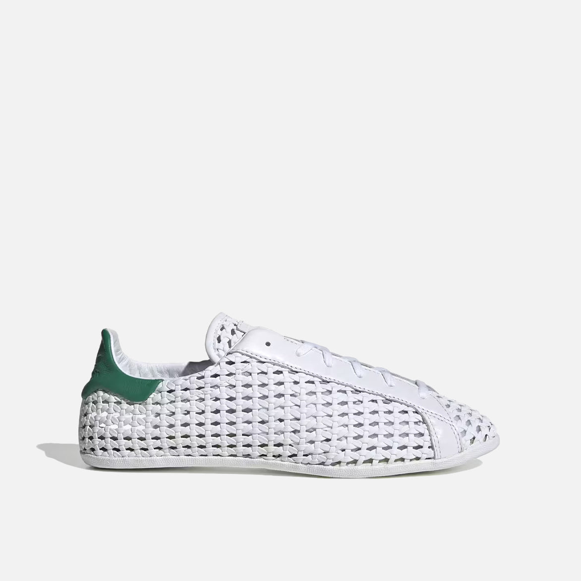 One of Adidas Originals iconic silhouettes gets a unique update on this women's exclusive style, the Stan Smith Lo Pro "Basketweave". Combining casual athletic and street style, this fresh take features a leather basketweave upper in the OG Stan Smith white and green color combo. White leather eyestay and debossed Trefoil branded tongue patch, green leather heel tab, white laces, molded sockliner and an ultra thin cupsole finish off the look.