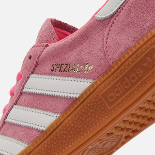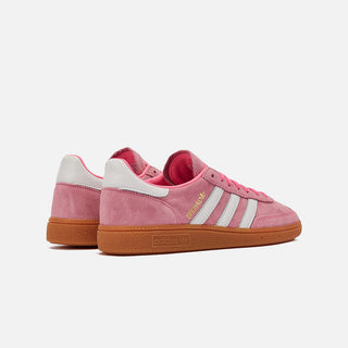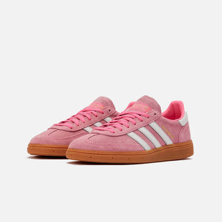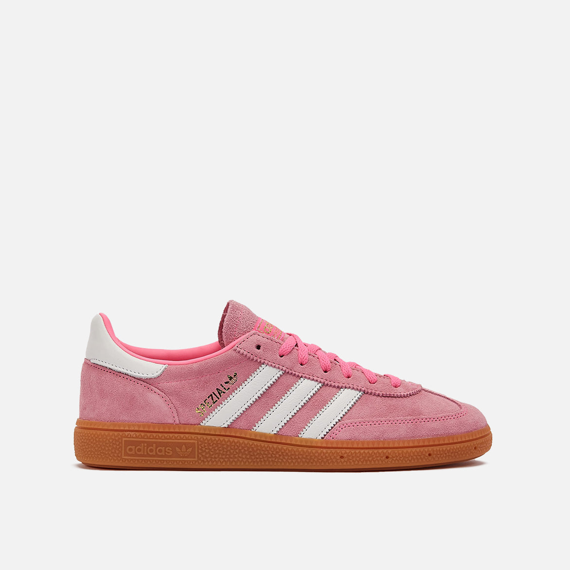 Originally released in the '70s, the WMNS Handball Spezial is a retro classic that has been revived for today. This version is built from a light pink suede upper overlaid with white leather 3-Stripes and heel tab, for a vintage look with modern comfort. A gum rubber sole unit offers grip and durability, while a gold and pink tongue tag, gold foil branding on the side, and pink laces and lining finish off the details.