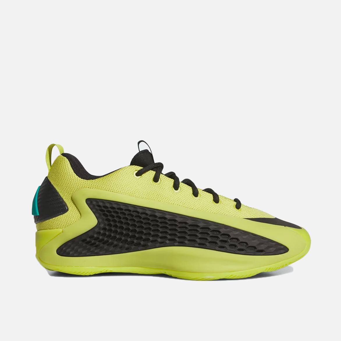 The hottest player in the game is back with a low top edition of his first signature, the AE 1 Low "Preloved Lime". These signature shoes from adidas Basketball and Anthony Edwards consist of a minimalist design of a lime green mesh upper wrapped in a black synthetic perforated overlay covering the bottom half of the shoe. It features a combined BOOST and Lightstrike midsole that is ultra-lightweight and boasts outstanding energy return for all your most explosive moves. A rubber outsole provides all the support you need to attack the hoop, while a teal signature Anthony Edwards logo on the tongue and adidas logo on the heel completes the look.