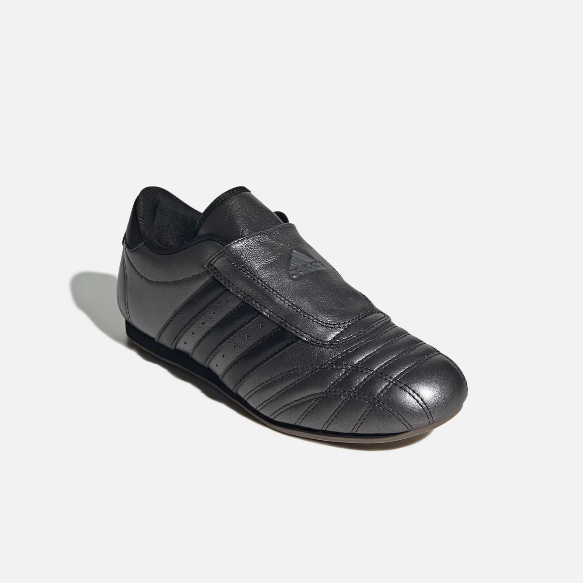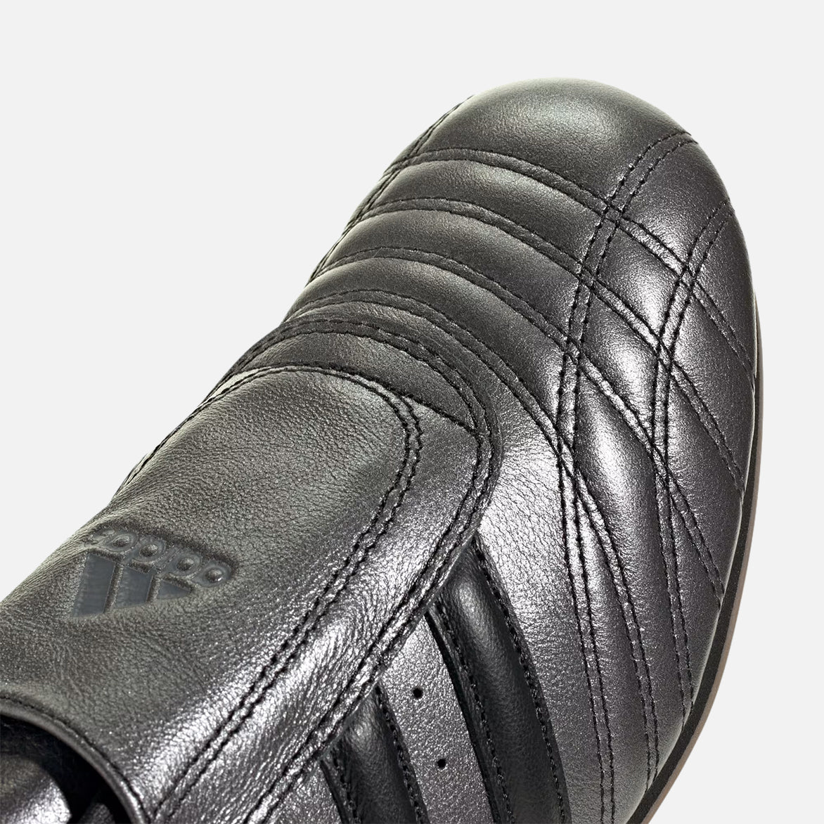 The WMNS adidas Taekwondo pays homage to footwear from an iconic era in the 2000s, moving them into a streetwear aesthetic. Deeply rooted in the history of martial arts, these sleek and shiny slip-on shoes ride on an ultra-low-profile black rubber sole. They're crafted with a quilted grey leather upper covered in a glossy metallic finish. A tonal lace cover, black leather 3-Stripes and matching heel tab complete the modern design.