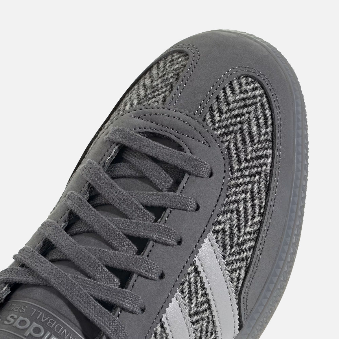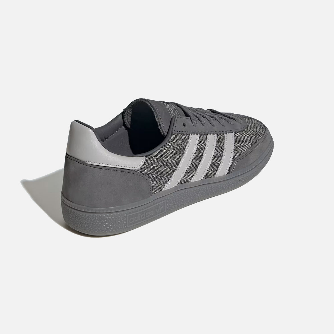 Originally released in the '70s, the Handball Spezial is a retro classic that has been revived for today. This new version bring together adidas and Harris Tweed, creating sneakers that's both stylish and functional. They're built from a grey Harris Tweed textile upper with grey nubuck overlays, light grey leather 3-Stripes and heel tab, and a grey rubber outsole. Minimal branding is restricted to the tongue tag and embossed adidas logo on the midsole to finish off the details.
