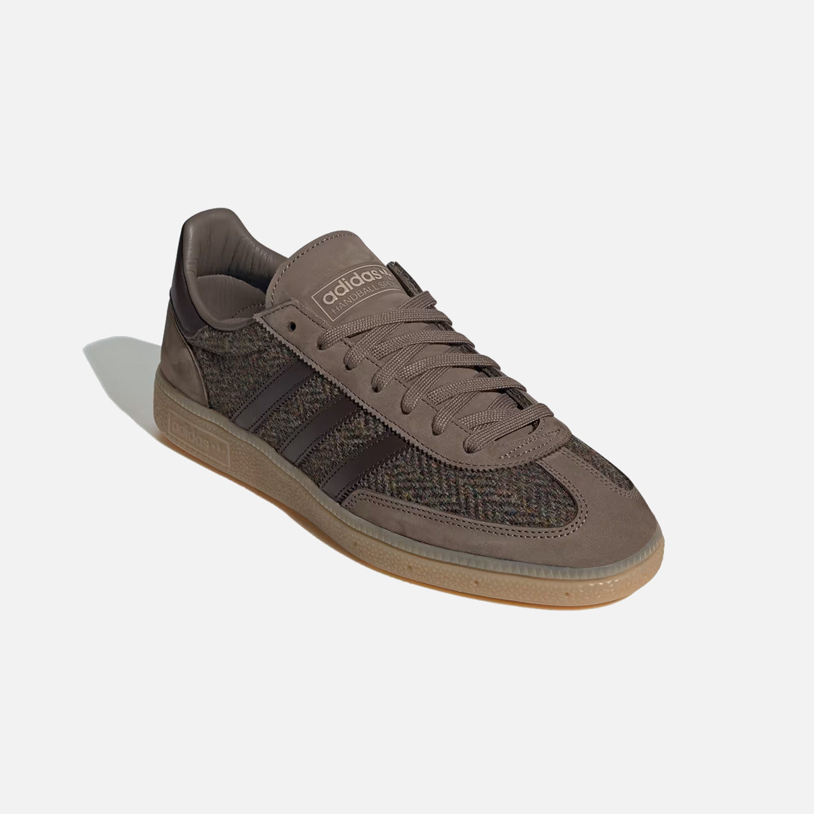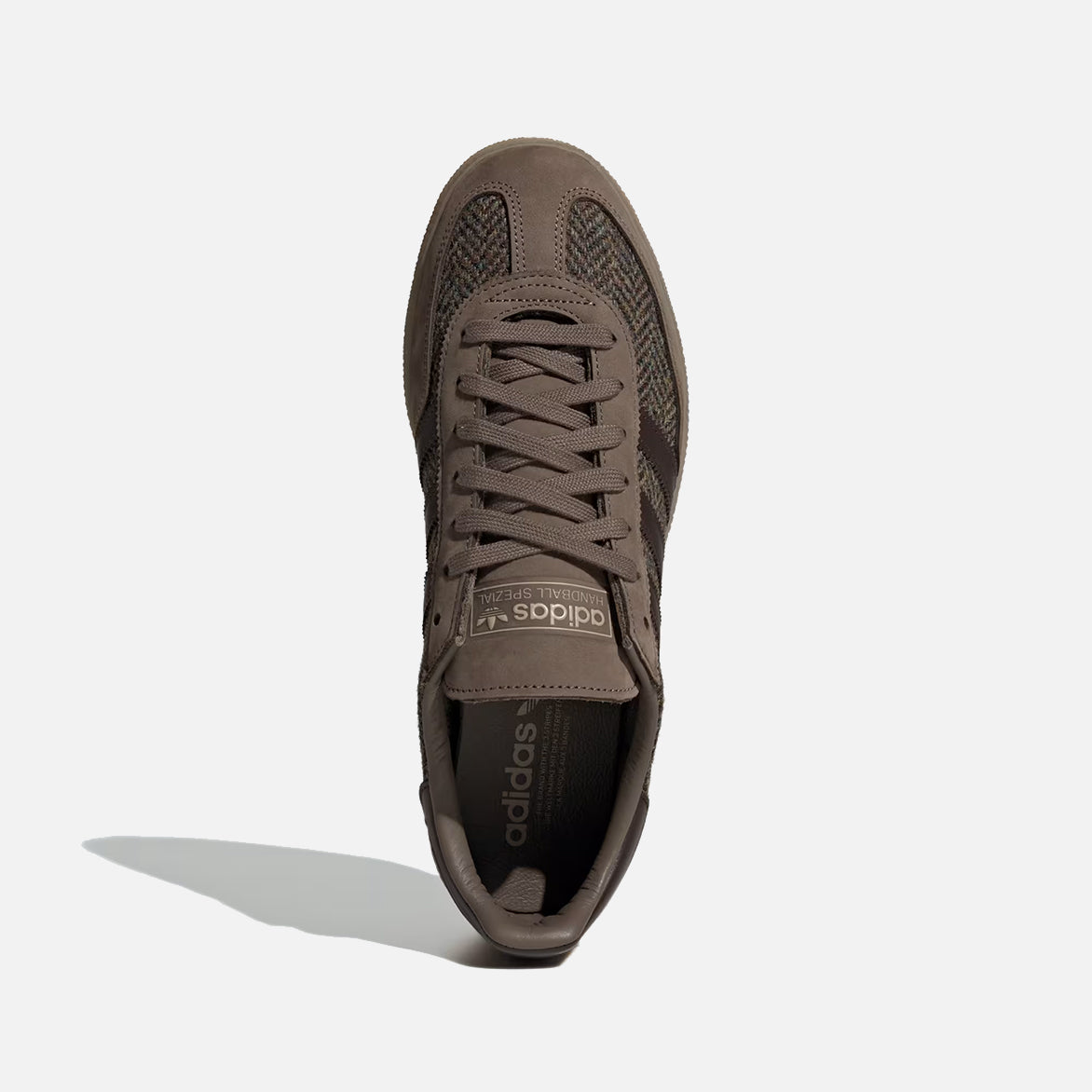 Originally released in the '70s, the Handball Spezial is a retro classic that has been revived for today. This new version bring together adidas and Harris Tweed, creating sneakers that's both stylish and functional. They're built from an earthy Harris Tweed textile upper with brown nubuck overlays, dark brown leather 3-Stripes and heel tab, and a gum rubber outsole. Minimal branding is restricted to the tongue tag and embossed adidas logo on the midsole to finish off the details.