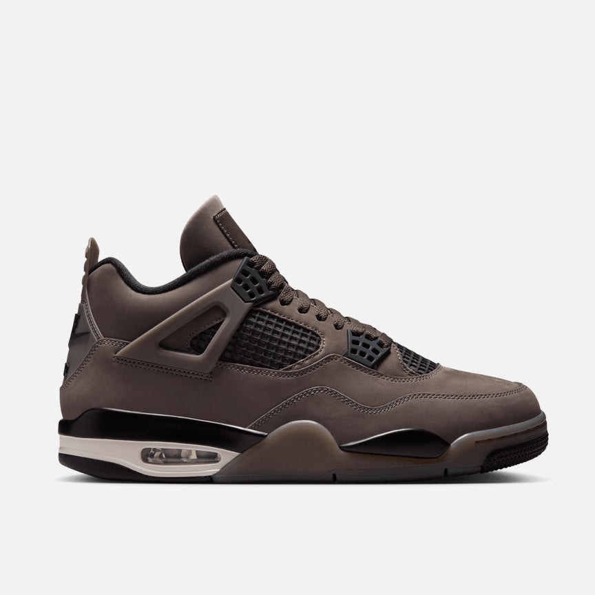 It's back to school time, and back to basics for Jordan Brand as they debut a brand new clean and seasonal colorway for one of their most iconic silhouettes, the Air Jordan 4 Retro "Cave Stone". You might get some La Flame deja vu as these give off serious Travis x AJ 4 "Mocha" vibes, pairing a brownish grey nubuck upper with black accents on the netting and midsole. Black also hits the lining and OG NIke Air branding on the heel, while tonal laces, tongue tag and TPU overlays diverge from Travis' model. A white and translucent cave stone midsole leads down to a tri-color rubber outsole to finish off the look.