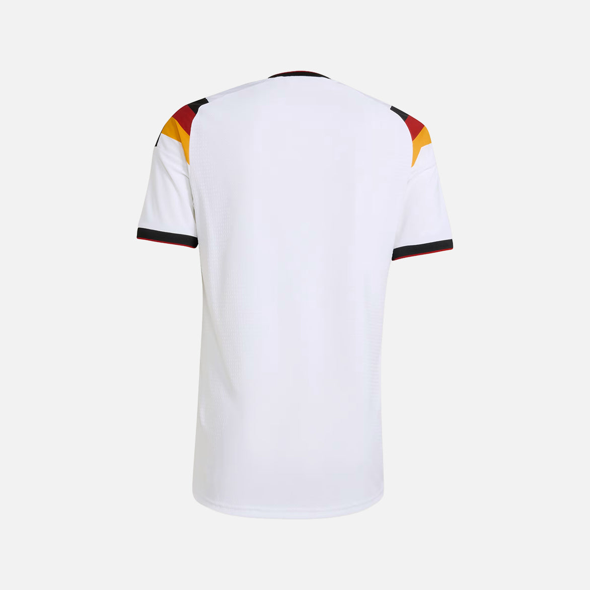 Represent a perennial European powerhouse with the Germany 26 Home Authentic Jersey. This jersey is crafted with Climacool+ technology, uniting superior engineering and advanced materials for a cool, dry, and distraction-free performance. Crafted with precision, the jersey features a contrast color collar and EQT collar with tape, adding a touch of style to your game. The sweat-wicking materials are strategically placed in high sweat zones, helping you feel comfortable throughout the match. adidas branding is subtly integrated with lenticular heat transfer logos and perforated 3-Stripes tape, showcasing the brand's commitment to quality and design.