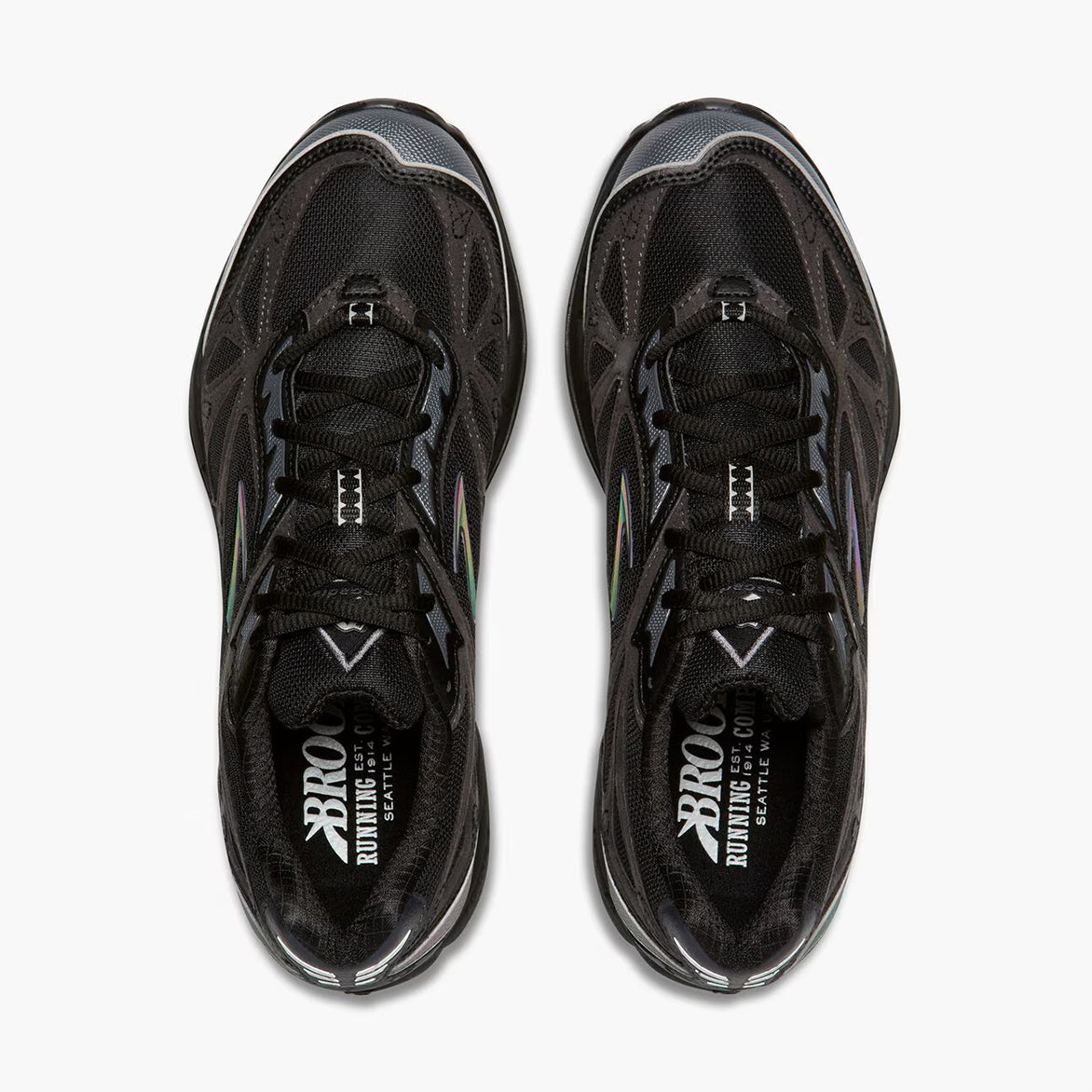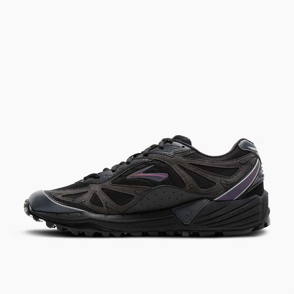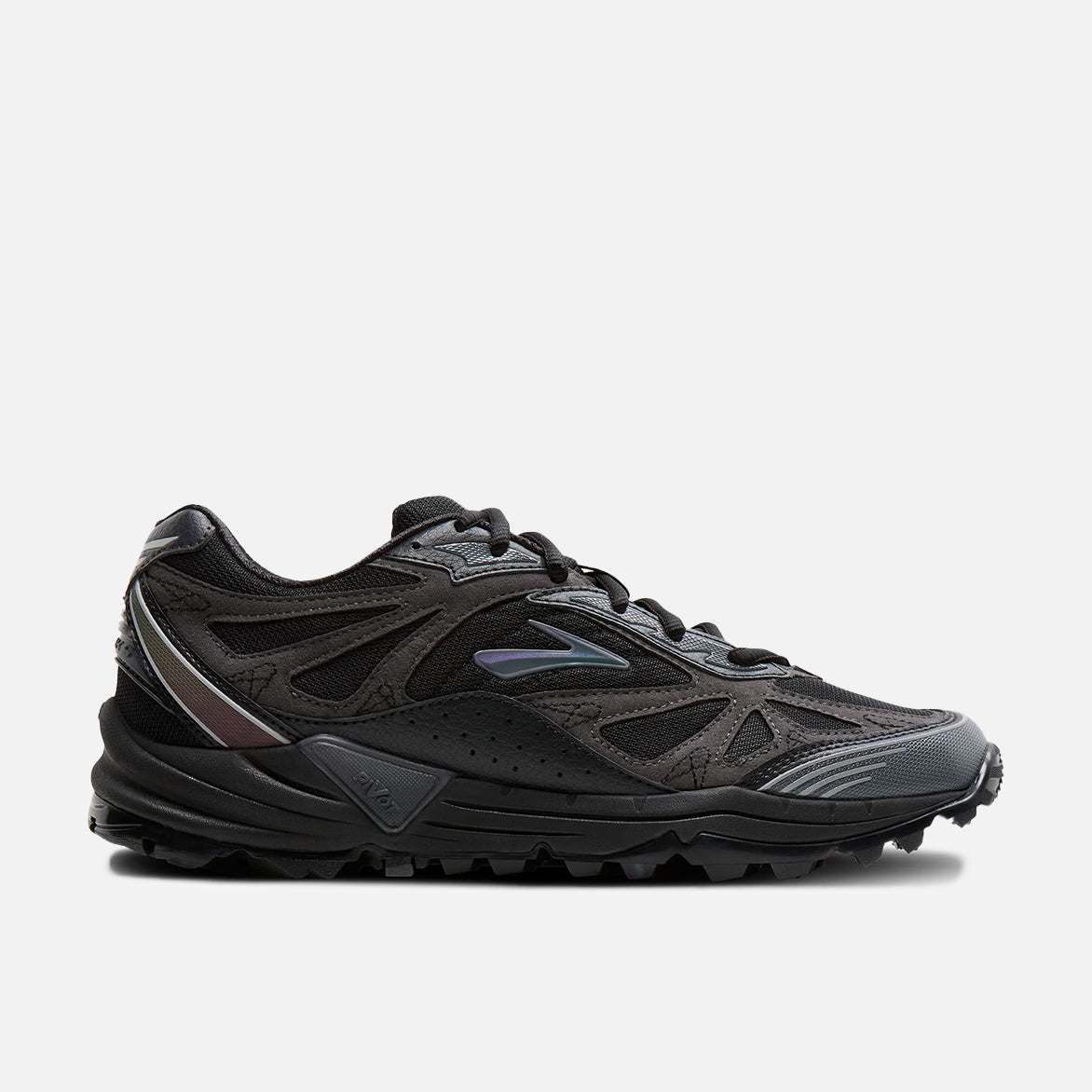 Originally created in 2004 for the growing trail-running scene, the Cascadia launched an iconic franchise for Brooks. Now the original is back with bold new style plus the same ready-for-anything design and adventurous spirit. The Cascadia 1 pays homage to its bold past with a dark combination of black and blue synthetic overlays on top of black mesh. The original Pivot Post technology, roll bar, HydroFlow, and crafted overlays are all restored, celebrating the details that contributed to the novelty of this groundbreaking shoe. While most elements of the original Cascadia remain intact, upgraded foam for comfort and a ballistic rock shield have been added to take your path from offroad trails to urban streets.