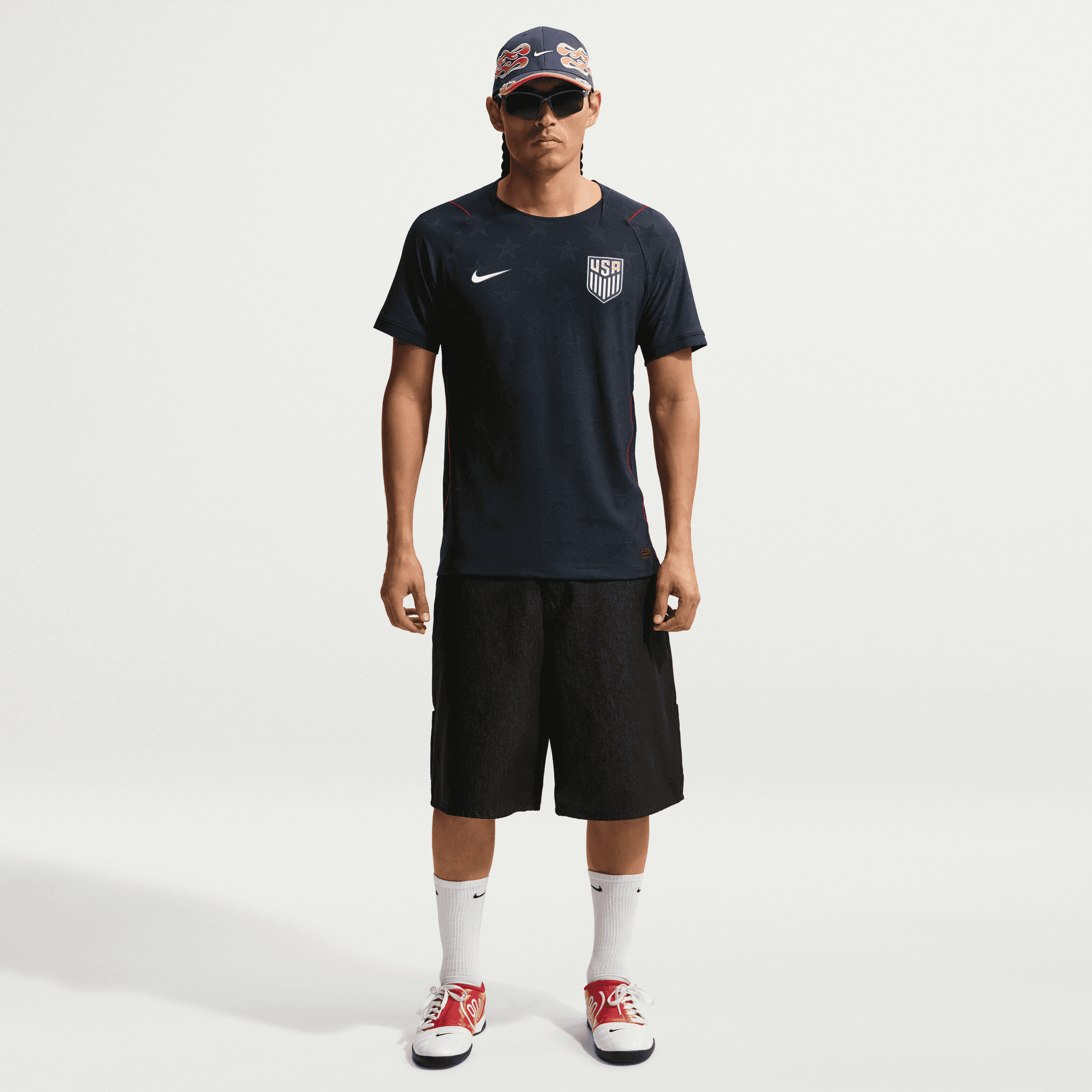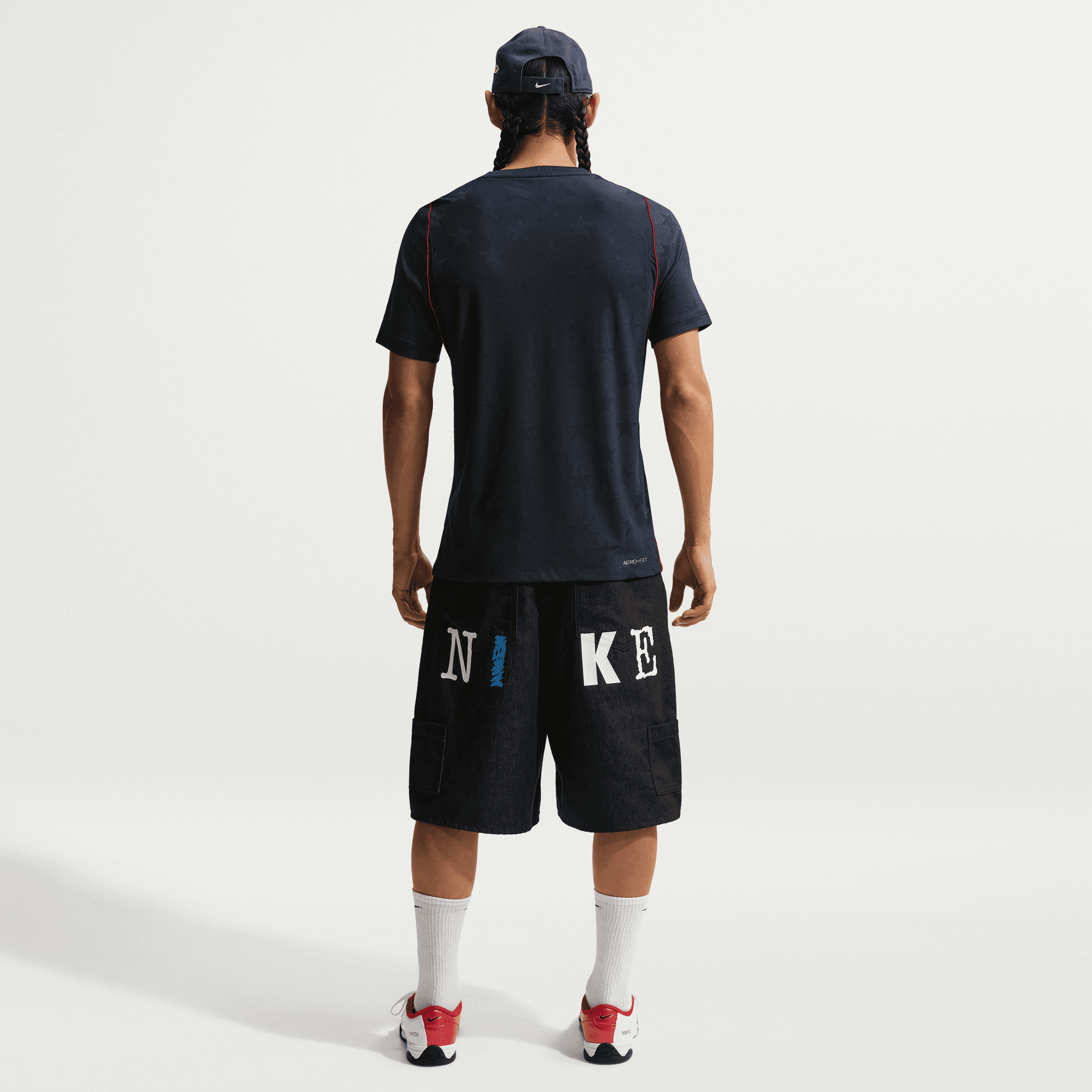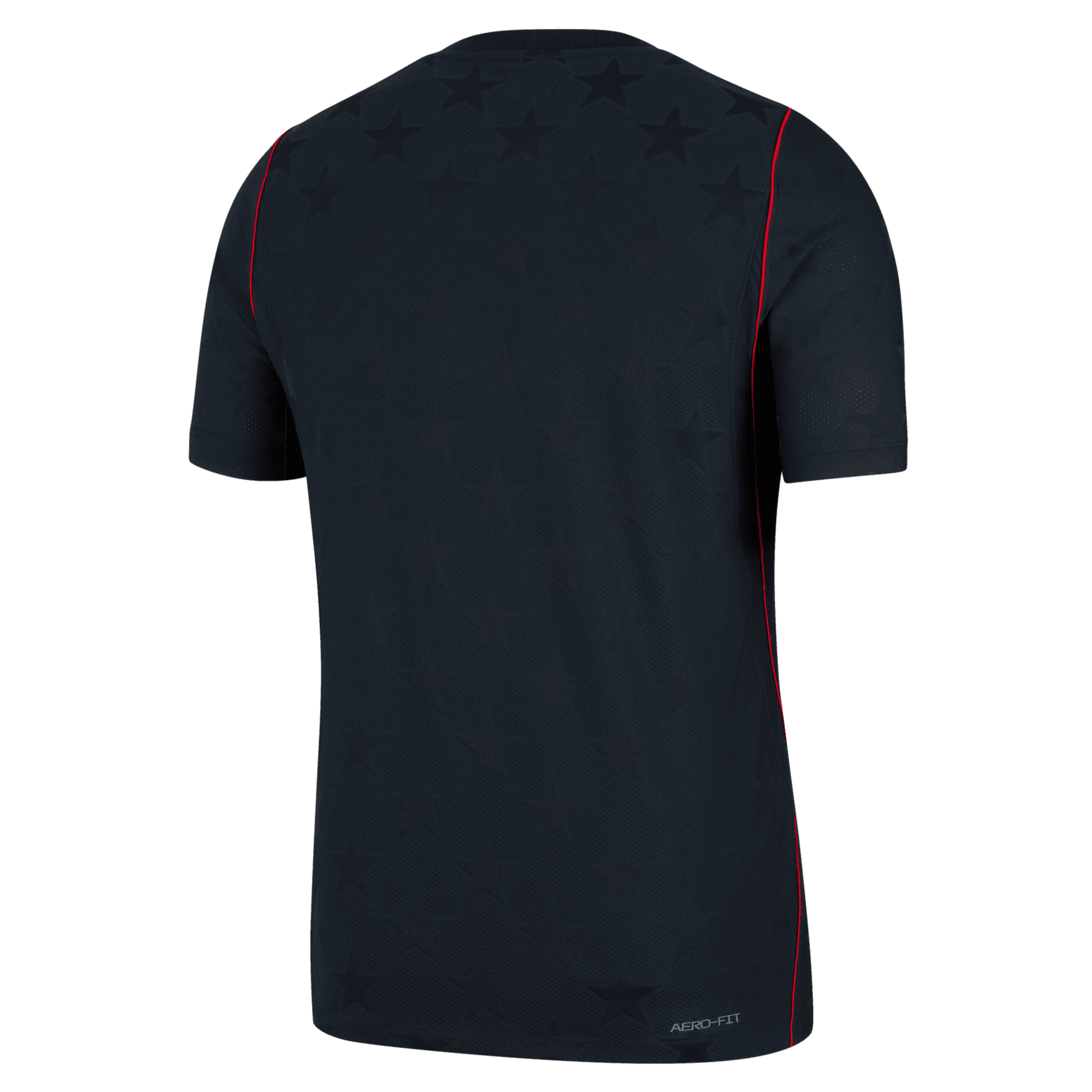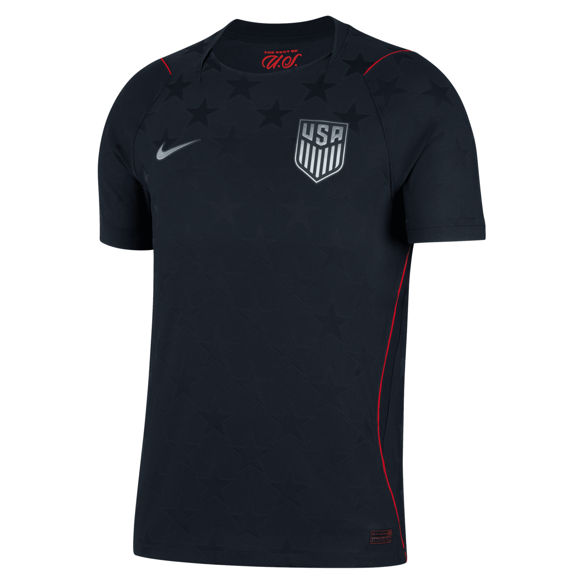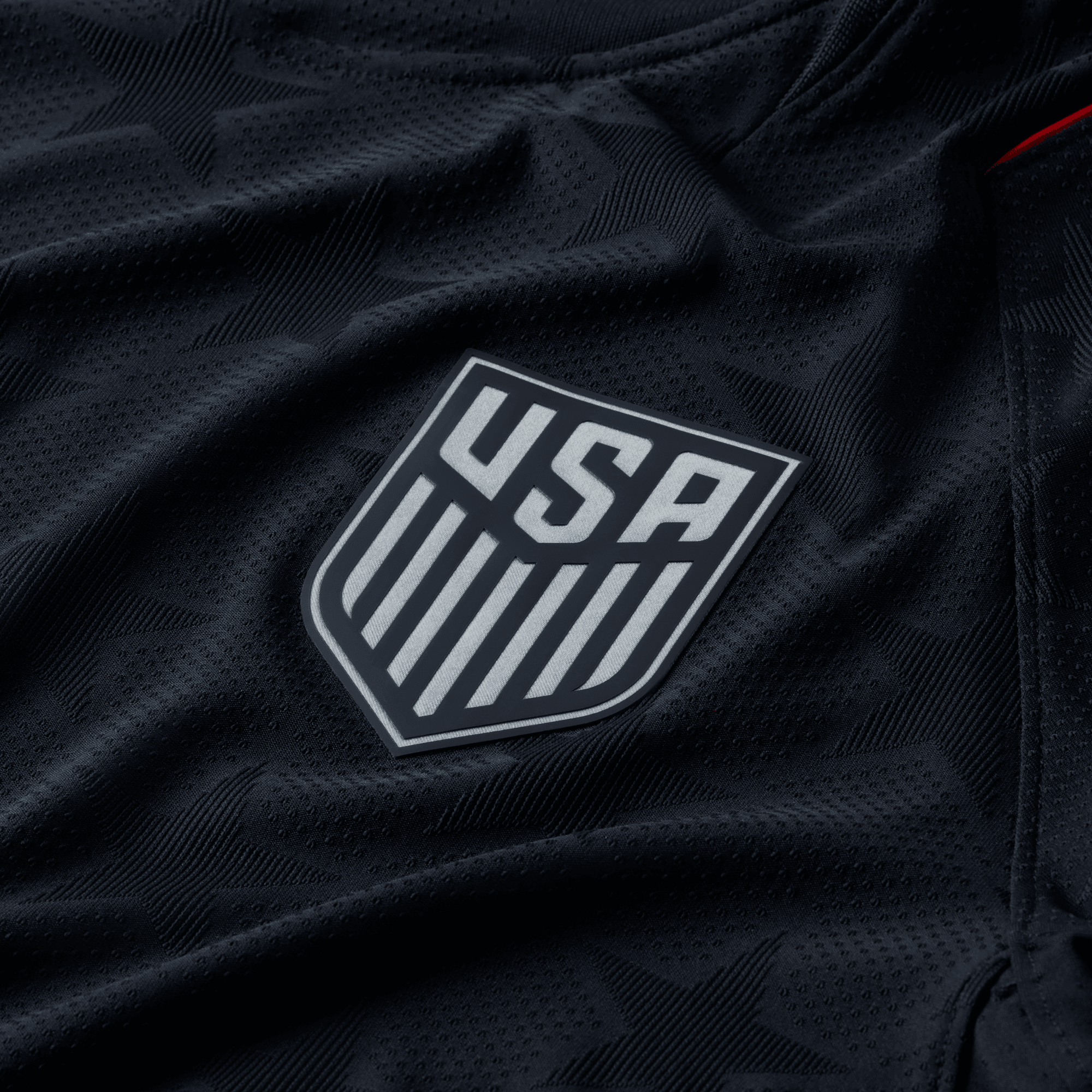 The World Cup is back on American soil for the first time since 1994 and Nike is proud to be the official outfitter of Christian Pulisic, Weston McKennie and the rest of our boys in the USMNT 2026 Away Jersey. Made from 100% polyester Aero-FIT technology, it is designed for maximum breathability, allowing airflow against your skin to help you stay cool when temperatures are high. It features an embroidered USA badge logo appliqué on the chest opposite a swoosh, allover textured star motif, red piping on the sides, and a ribbed collar.