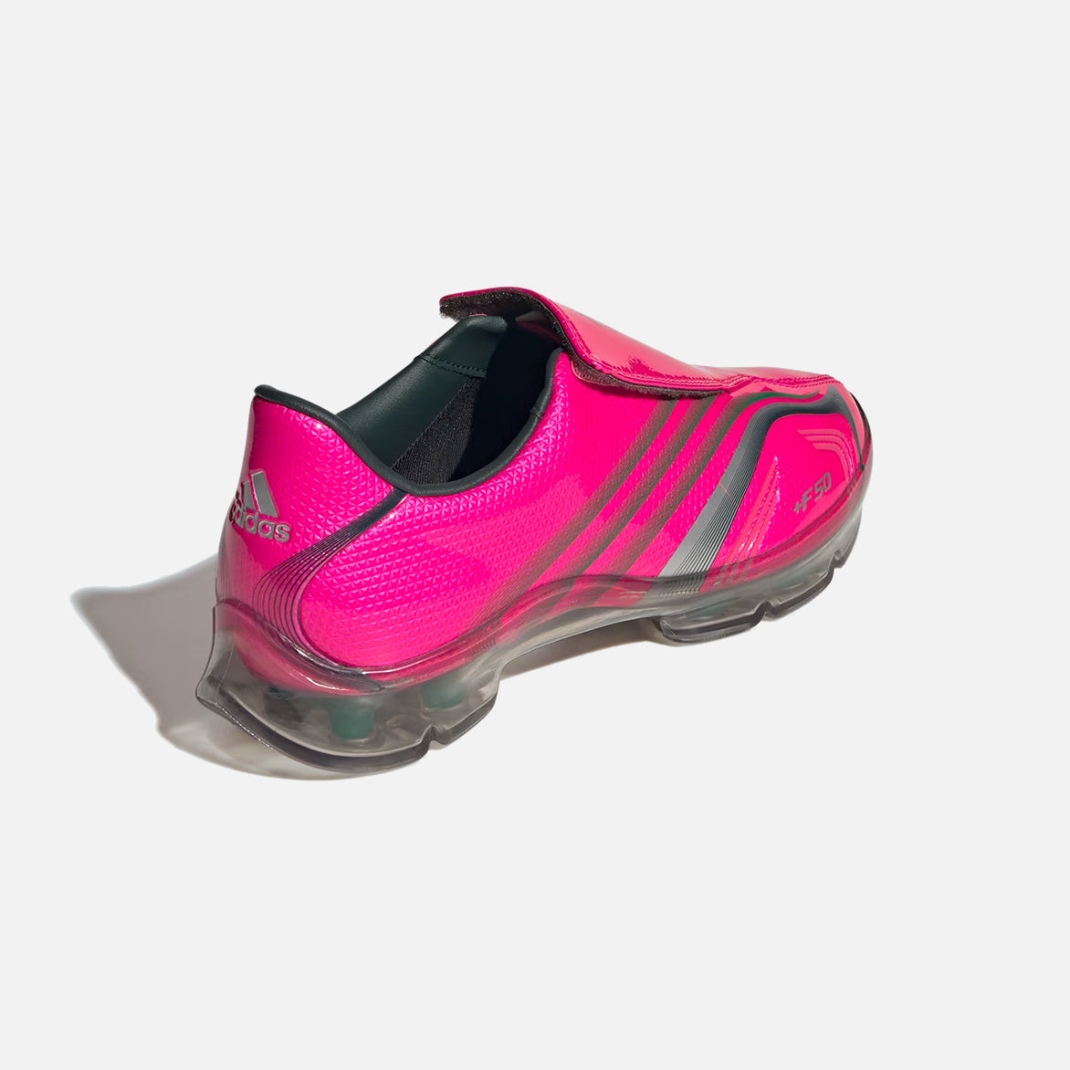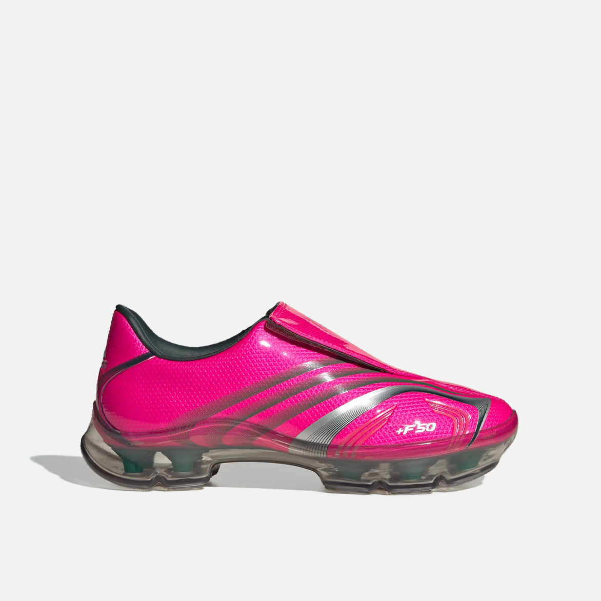 Bring the pitch directly to the streets with the WMNS F50 Adiframe. Inspired by the iconic 2006 F50 soccer shoes, these shoes celebrate a legacy of style and performance by literally encasing the cleats in rubber to make these the most urgent of any soccer-inspired lifestyle silhouette. Designed for streetwear enthusiasts, these shoes feature a slip-on construction with a textured tongue that pays homage to the unforgettable design of the original cleats. The cleat plate and midsole are encapsulated by a soft, translucent TPU wrapping, providing comfort and visibility. The rubber outsole offers grip and stability on various surfaces, while the iconic adidas 3-Stripes and branding give a nod to a rich soccer legacy.