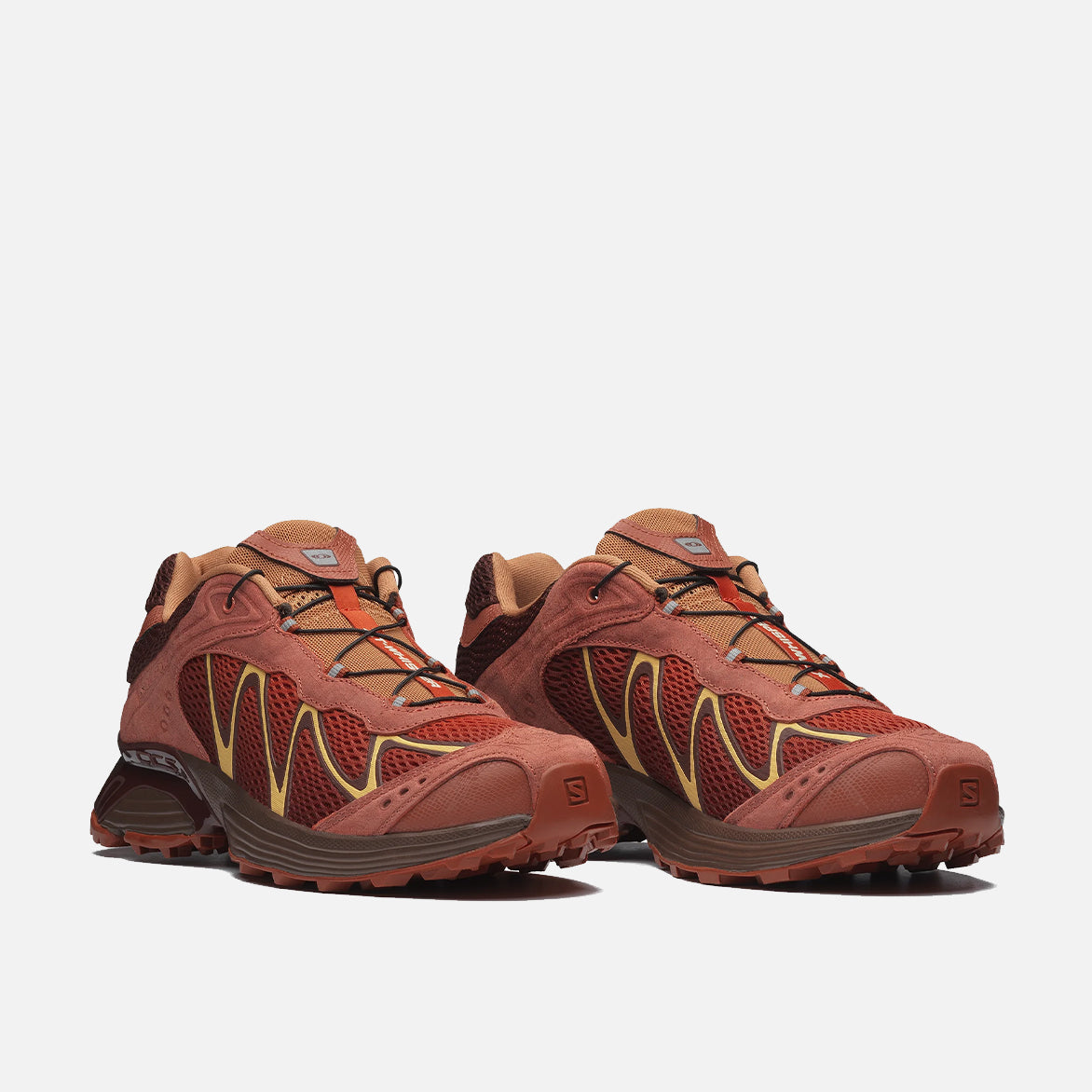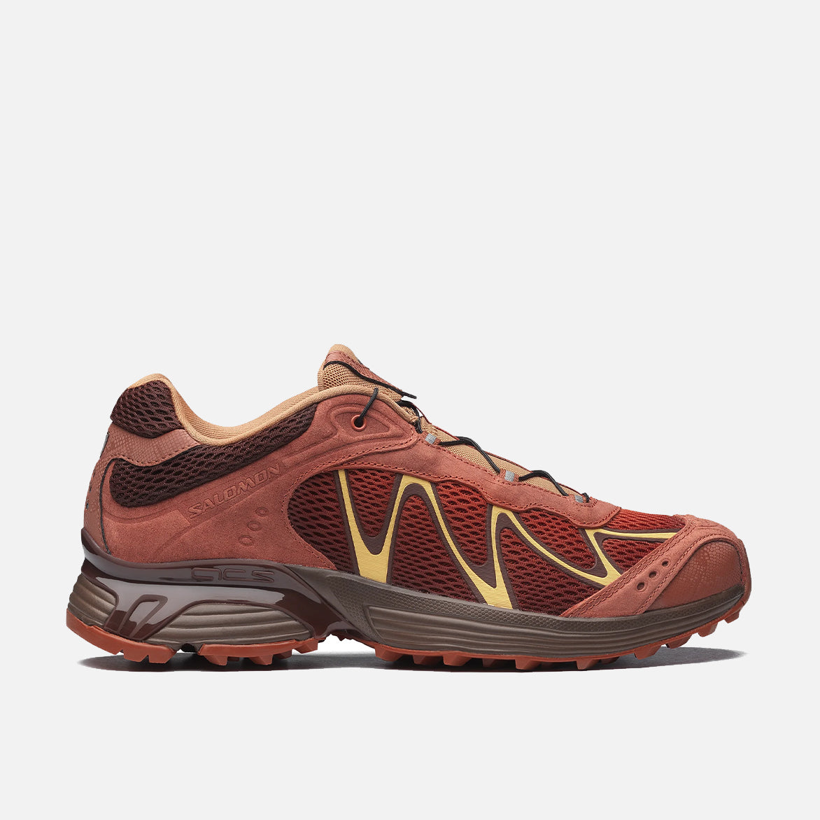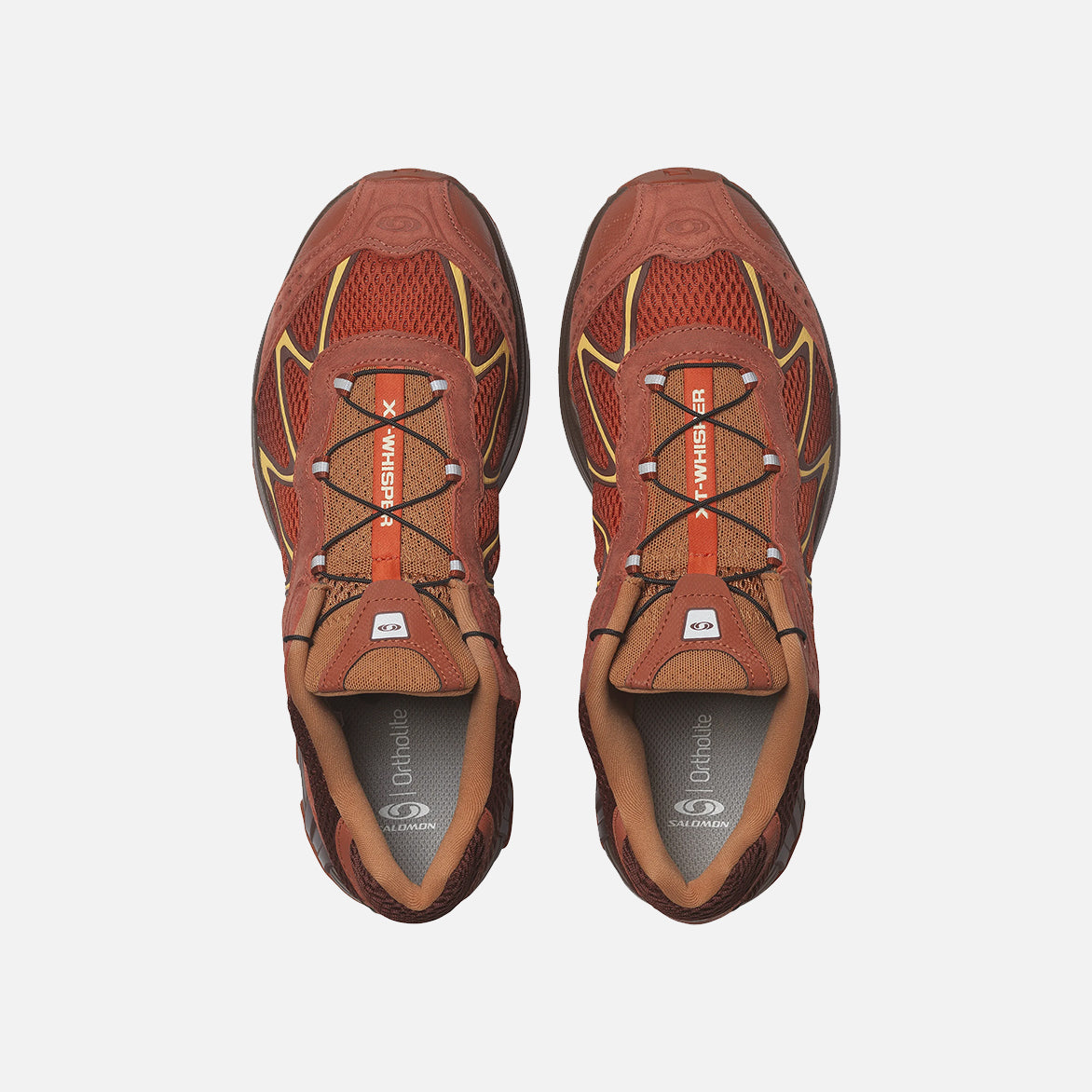Strong in Salomon DNA, heir to an XT design lineage, XT-WHISPER is provocatively textured and rich in layered call-outs and product finish. This XT-Whisper Fiery Red Ashes pays homage to the arid, relentless and unique ecosystem of the harshest deserts. A scuffed leather effect mimicking sand-worn surfaces and snakeskin-like details on the toe, heel and tongue create a rugged yet refined look. Textured mesh adds breathability and embodies the resilience of this harsh terrain.