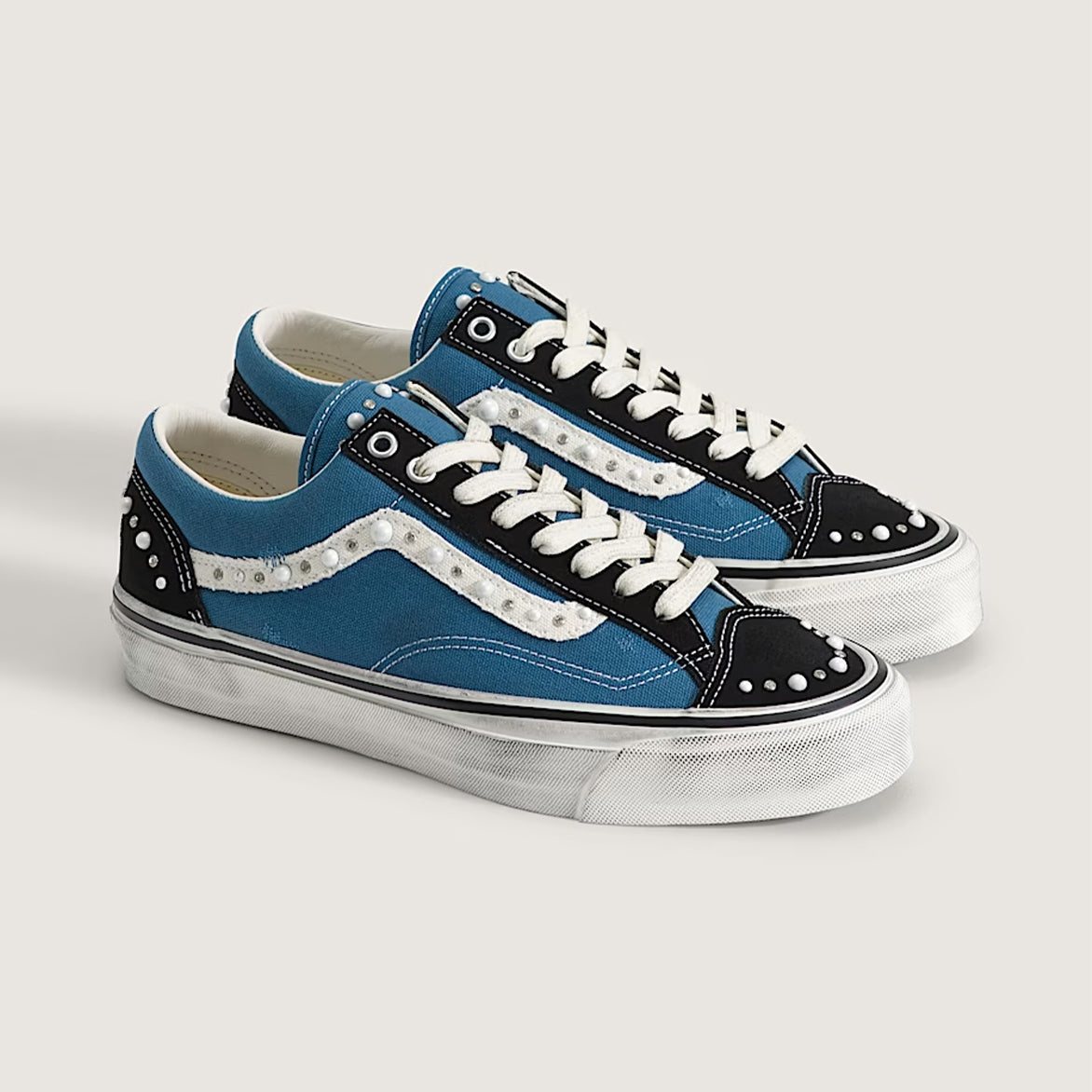 The Vans LX Classic OLD SKOOL 36 "Pearlized" refines the iconic skate shoe with pearlized details and enhanced cushioning. The classic silhouette is given an elevated makeover shiny pearl adornment on the canvas and suede upper and a Sola Foam ADC (All-Day Comfort) insole for soft and durable cushioning. It sits on top of a vulcanized rubber cupsole with subtle distressing on the sidewalls and signature gum rubber Waffle outsole. The iconic sidestripe is rendered in canvas instead of leather, and a "Vans Off The Wall" license plate on the heel finish off the look.
