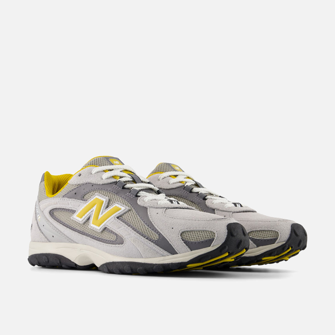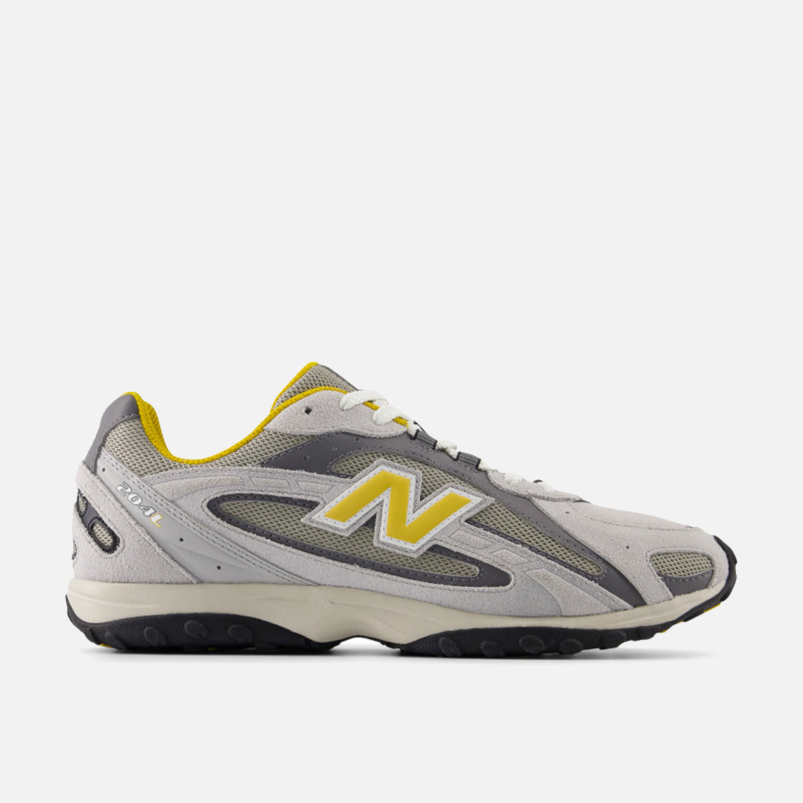 New Balance moves away from the chunky-soled "dad" look for their newest lifestyle silhouette: the 204L, an unexpected interpretation of 2000s running-inspired style. This low-profile silhouette blends the slim structure of '70s running shoes with layers of the tech-inspired texture of premium grey suede and embossed overlays over grey mesh with yellow accents. Pulling design elements from past and present New Balance favorites like the 321, 740, and 530, the 204L feels familiar, yet new. Its sleek proportions, accented with arced lines across the overlay, make the 204L both unique and easy to wear, while an EVA sole unit and 70s-inspired tread pattern finish off the design.