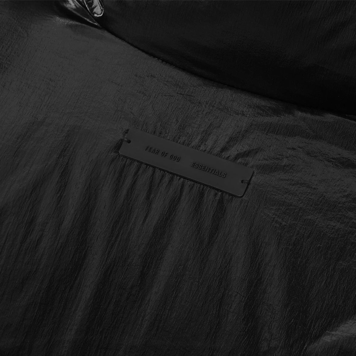 The Puffer Jacket is crafted from ripstop nylon, offering a high gloss appearance with water repellant properties. The piece is detailed with an metallic 3M-printed “Essentials ” graphic on the sleeve to enhance its relaxed, rounded silhouette. Functional details include a high neck, side pockets, full zip front, elasticized piping on the cuffs and waist hem, and bungee toggles at the waist hem for adjustable styling. A Fear of God Essentials rubberized label stitched at the center front.