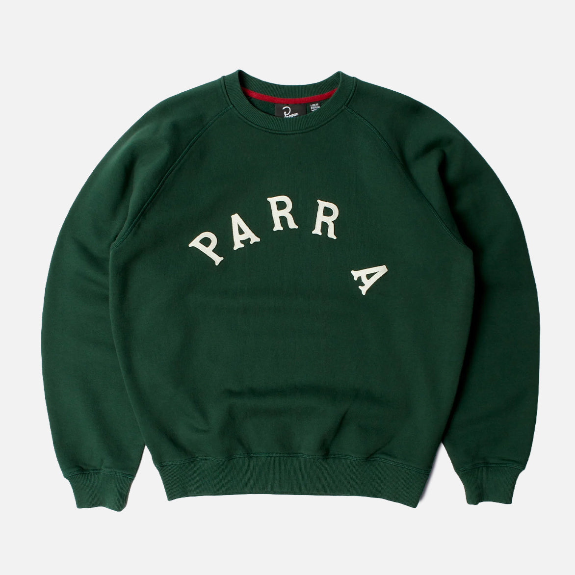 The By Parra Drunk Parent Crew is a 100% cotton crewneck sweatshirt with Drunk Parent appliqué logo on chest.