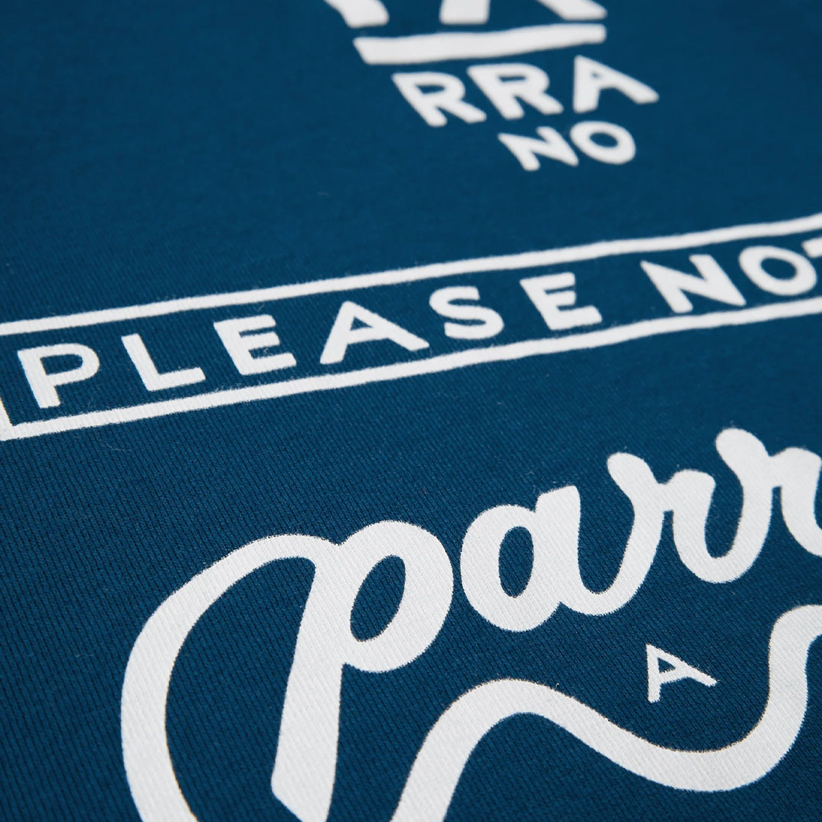 The By Parra Media Training Tee is a 100% cotton s/s tee with multiple Parra logos printed on the front and back.