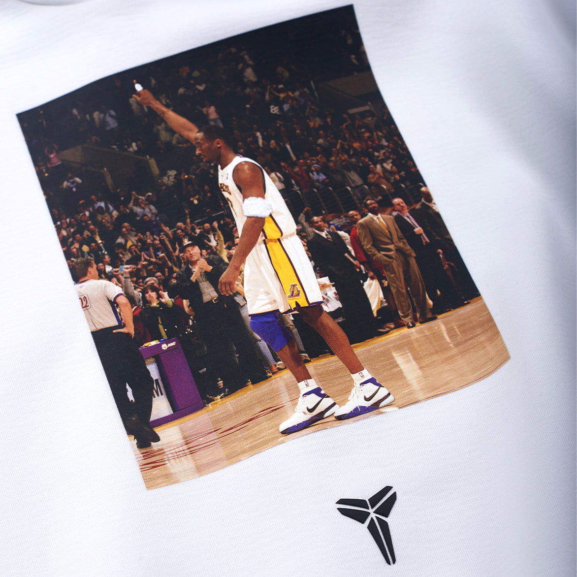 Nike honors the 20th anniversary of Kobe Bryant's incredible 81 point game with a special re-issue of the shoe he was wearing that night, the Kobe 1 Protro "81 Points". Releasing alongside the historic shoe is an apparel capsule featuring this roomy, 85% polyester/12% cotton/3% spandex Dri-FIT fleece hoodie that features an iconic image of the Mamba from the game, gold star embroidered patches on the sleeves and an adjustable bungee cord waist.