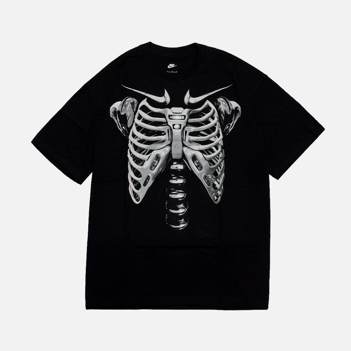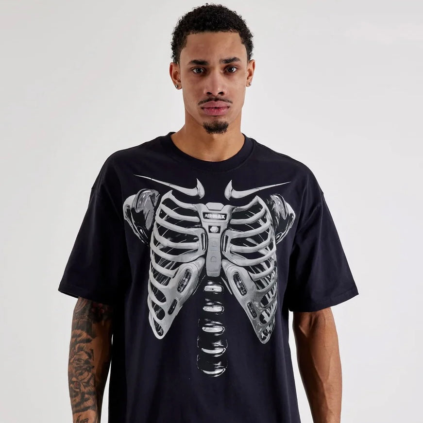 Turn your world inside-out with the Nike Max90 X-Ray Tee. This loose-fitting, 100% cotton tee boasts a front and back graphic of a rib cage and spine comprised of Air Max 95 elements in place of the bones. Prove your love of the Max is more than just skin deep.