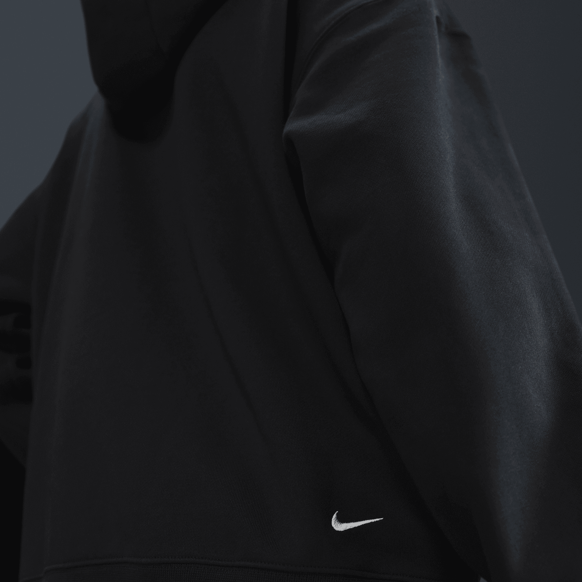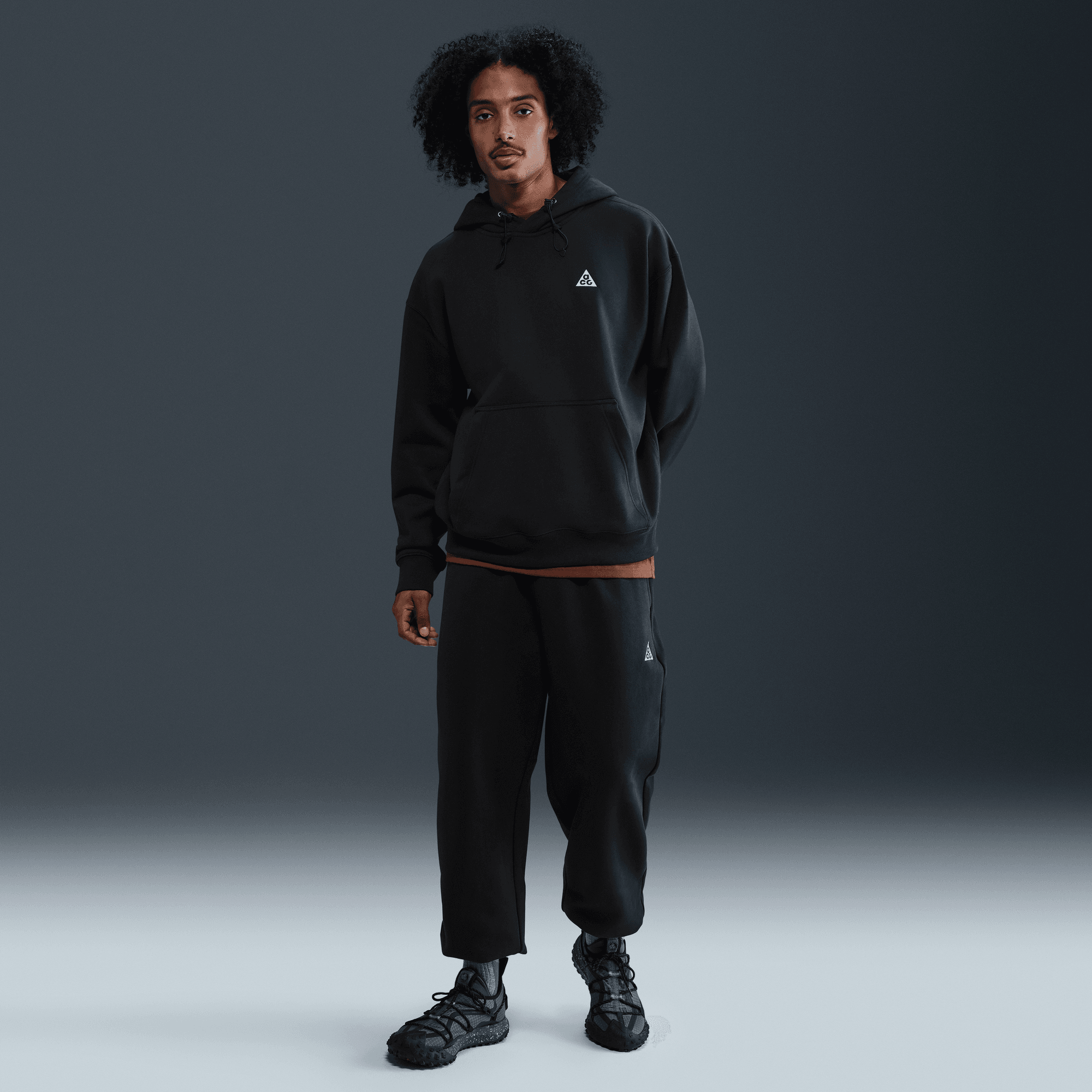 Nike's legendary ACG line made sturdy gear that could weather any condition, like this ACG Therma-Fit Fleece Pullover Hoodie. Inspired by the climate and wilderness of Iceland, this 75% organic cotton/25% recycled polyester fleece hoodie is made with at least 75% sustainable materials. It uses Nike's Therma-FIT technology to utilize the body's natural heat and is covered in a water-repellant finish. It features a three piece hood with a toggled drawcord, zippered kangaroo pocket, embroidered ACG logo on chest and ribbed cuffs and hem.