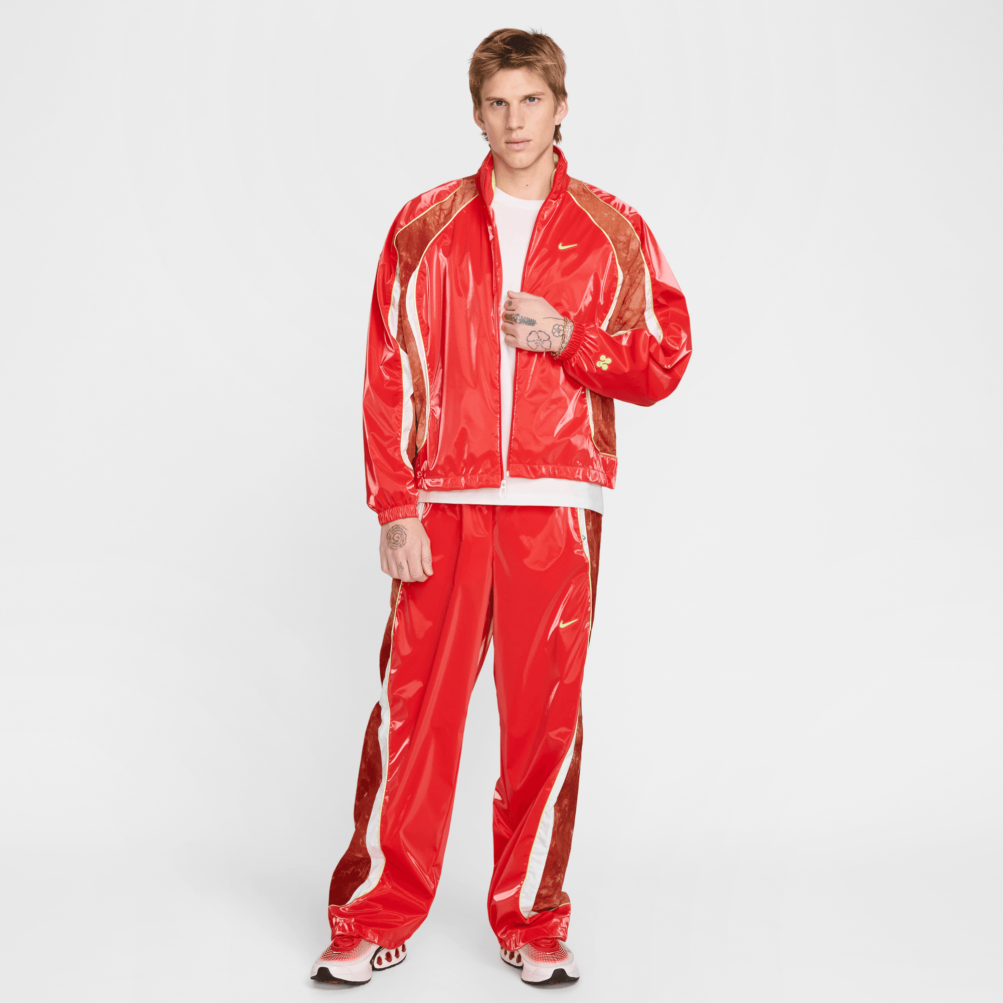 Nike reimagined the classic track jacket with high-gloss knit, wave-dyed taffeta and contrasting trim. From off-balance retro color combinations to fresh fits and fabrics, Project F.R.O.G. breathes new life into sport apparel. This jacket offers a bold combination of a high-gloss coated fabric and wave-dyed taffeta with contrasting trim. It's lined with mesh for breathability and comfort. This jacket offers a bold combination of a high-gloss coated fabric and wave-dyed taffeta with contrasting trim. It's lined with mesh for breathability and comfort.