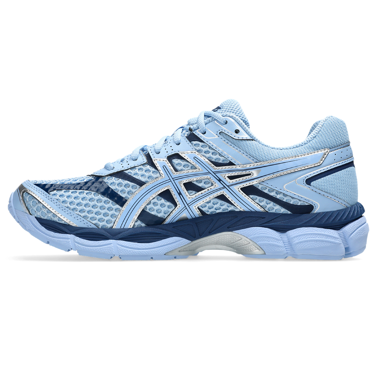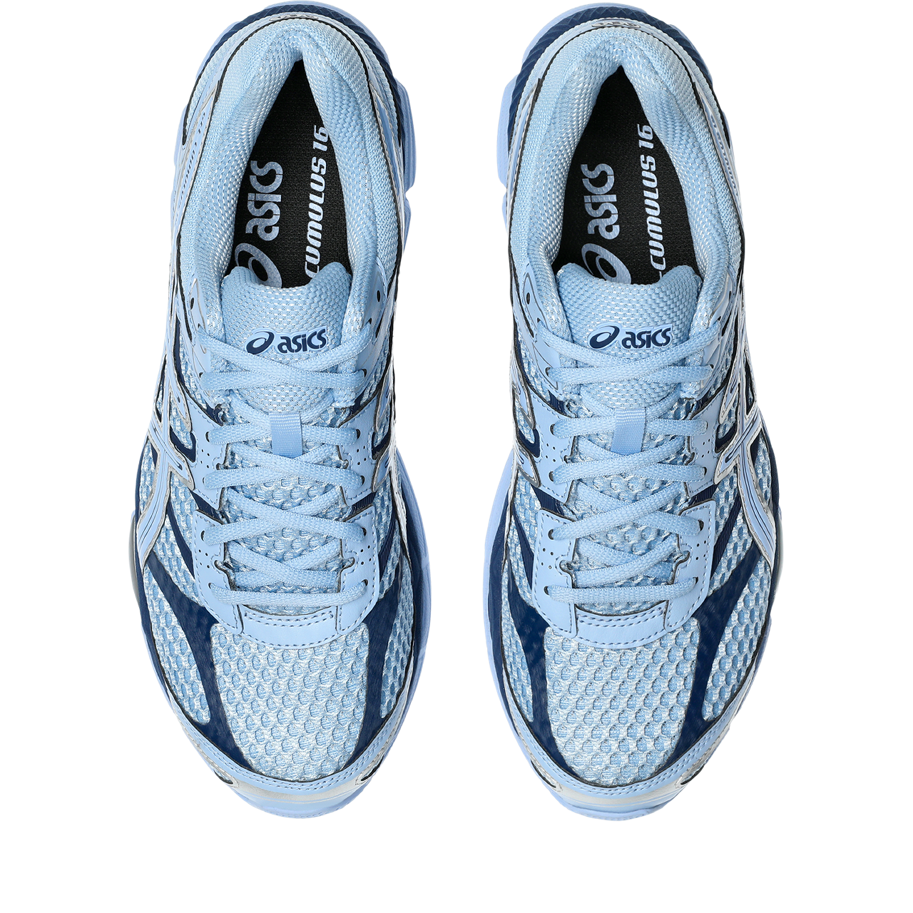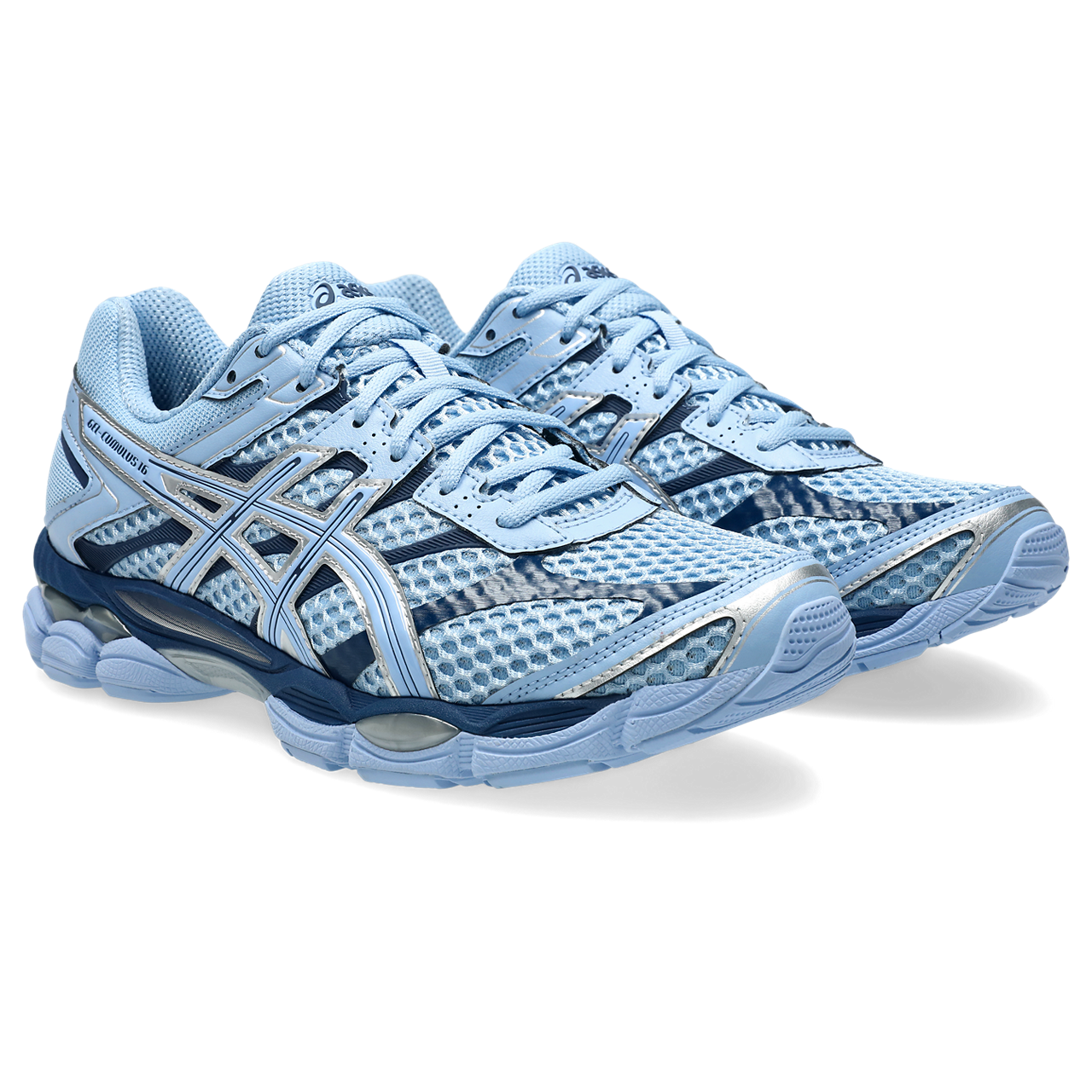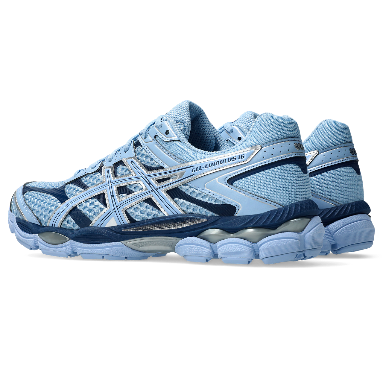 Originally launched in 2014, the GEL-CUMULUS® 16 sneaker is formerly recognized for its soft cushioning capabilities while running longer distances. Its upper construction features a combination of glossy synthetic leather overlays, no-sew paneling, and open mesh underlays. This fusion of materials creates a technical aesthetic that's symbolic of advanced running shoes in the 2010s. The sneaker's soft cushioning properties are left intact. It features dual GEL® technology inserts, FLUIDRIDE™ technology, and FLYTEFOAM® technology to help provide a comfortable feel underfoot.