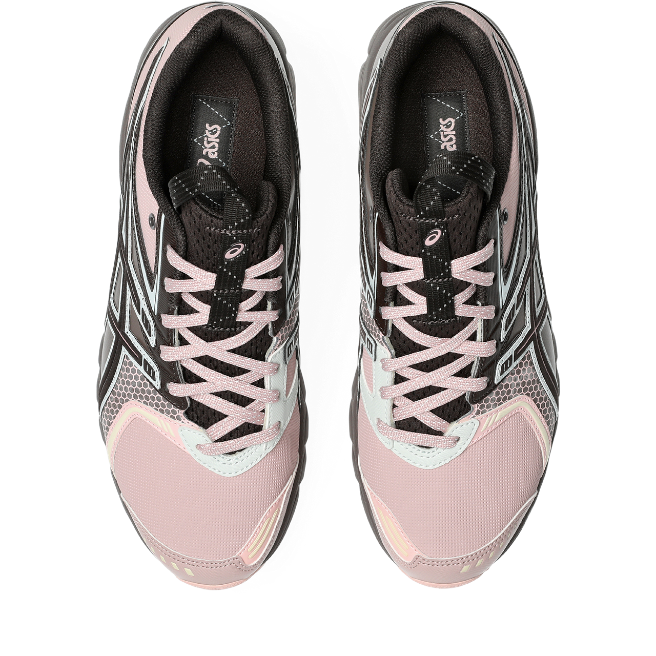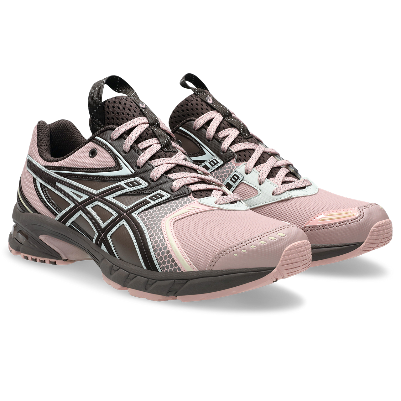 The latest creation of Kiko Kostadinov Studio and ASICS SportStyle development team, the UB11-S GEL-DS TRAINER 14, draws design inspiration from relic environments as shelter. These details reflect nature's imprint and its impact of discarded and reclaimed objects in natural landscapes. Opaque and bright colors are contrasted with matte hues to highlight the connection between nature and humanity. The upper's layered materials are symbolic of fossils and petrology while the moiré surfaces reflect the surfaces of ready-made everyday objects. This midsole's tooling shape features a sleeker construction that's met with comfortable cushioning properties. Its lightweight design is also paired with a TRUSSTIC® support unit for stability and rearfoot GEL® technology for impact absorption.