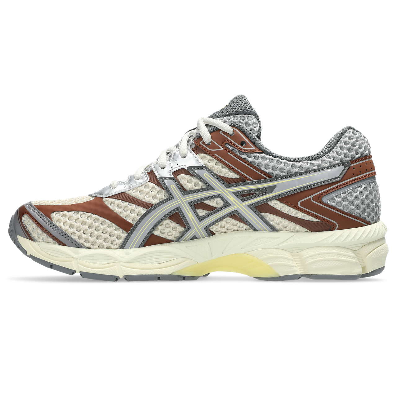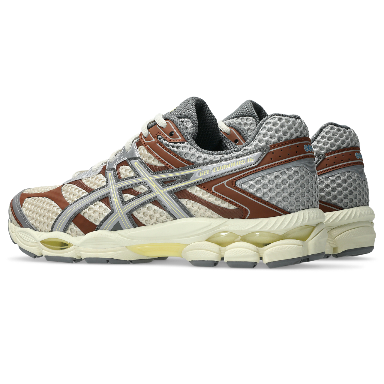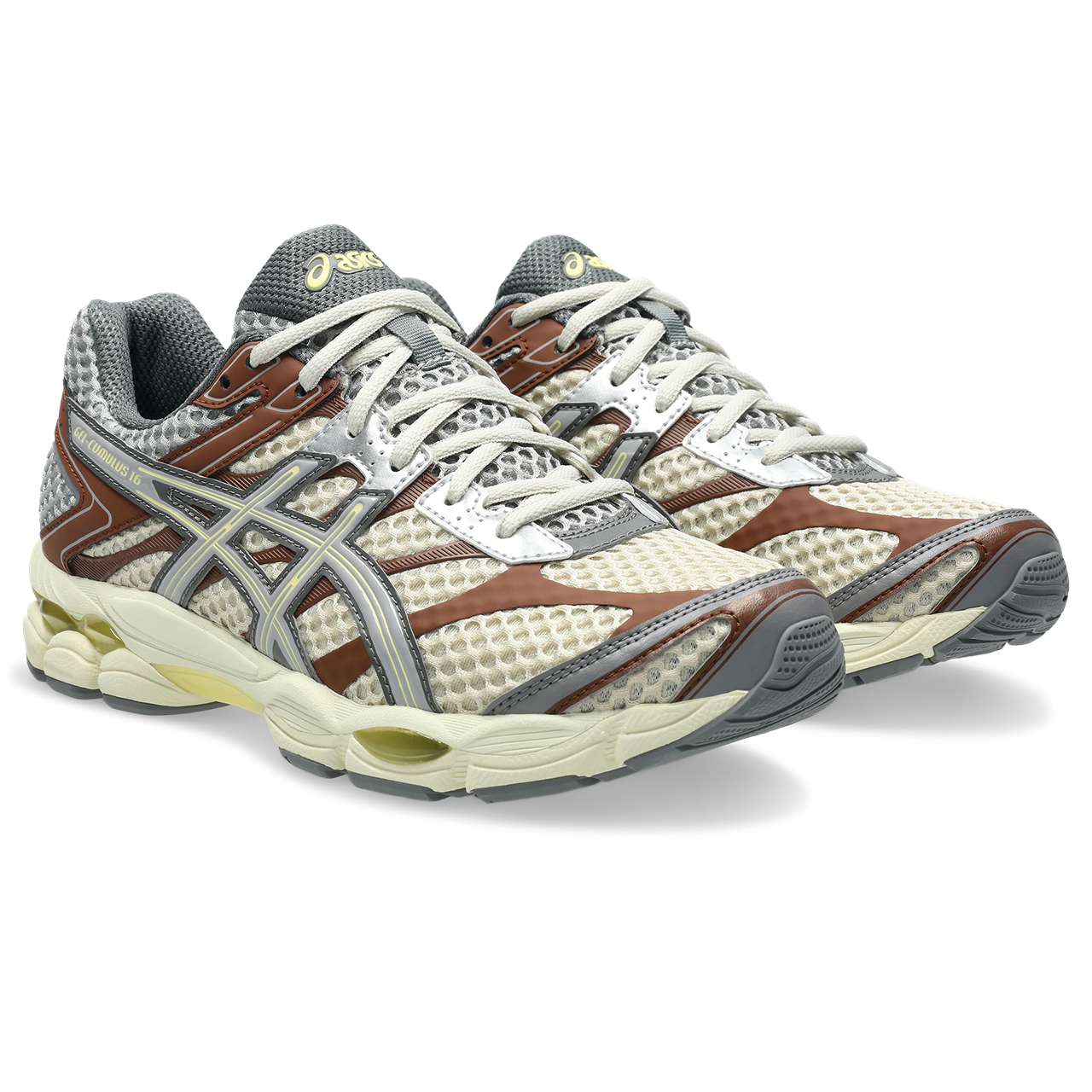 Tokyo's premier women's boutique, emmi, continues their long-running partnership with ASICS with their take on the GEL-CUMULUS 16. The emmi x ASICS GEL-CUMULUS 16 bring's emmi's feminine sensibilities to the retro tech runner, with a city-ready combo of brown synthetic leather over a cream and grey open-weave mesh upper. Silver and yellow no sew accents hits the stripes while silver synthetic panels flash on the eyestay. Yellow ASICS branding on the tongue, insole and rear quarter matches the GEL pods in the cream midsole, while a grey rubber outsole completes the design.