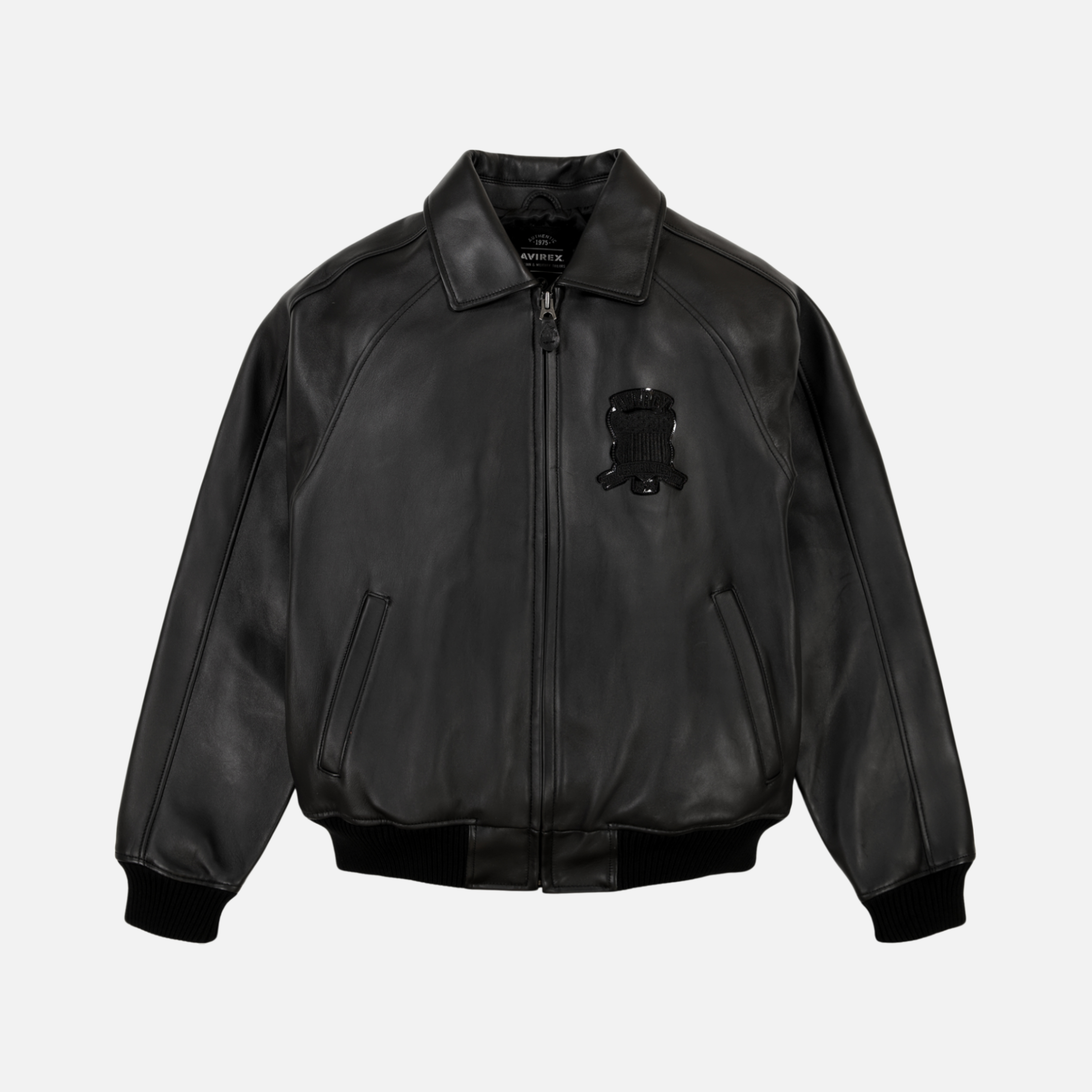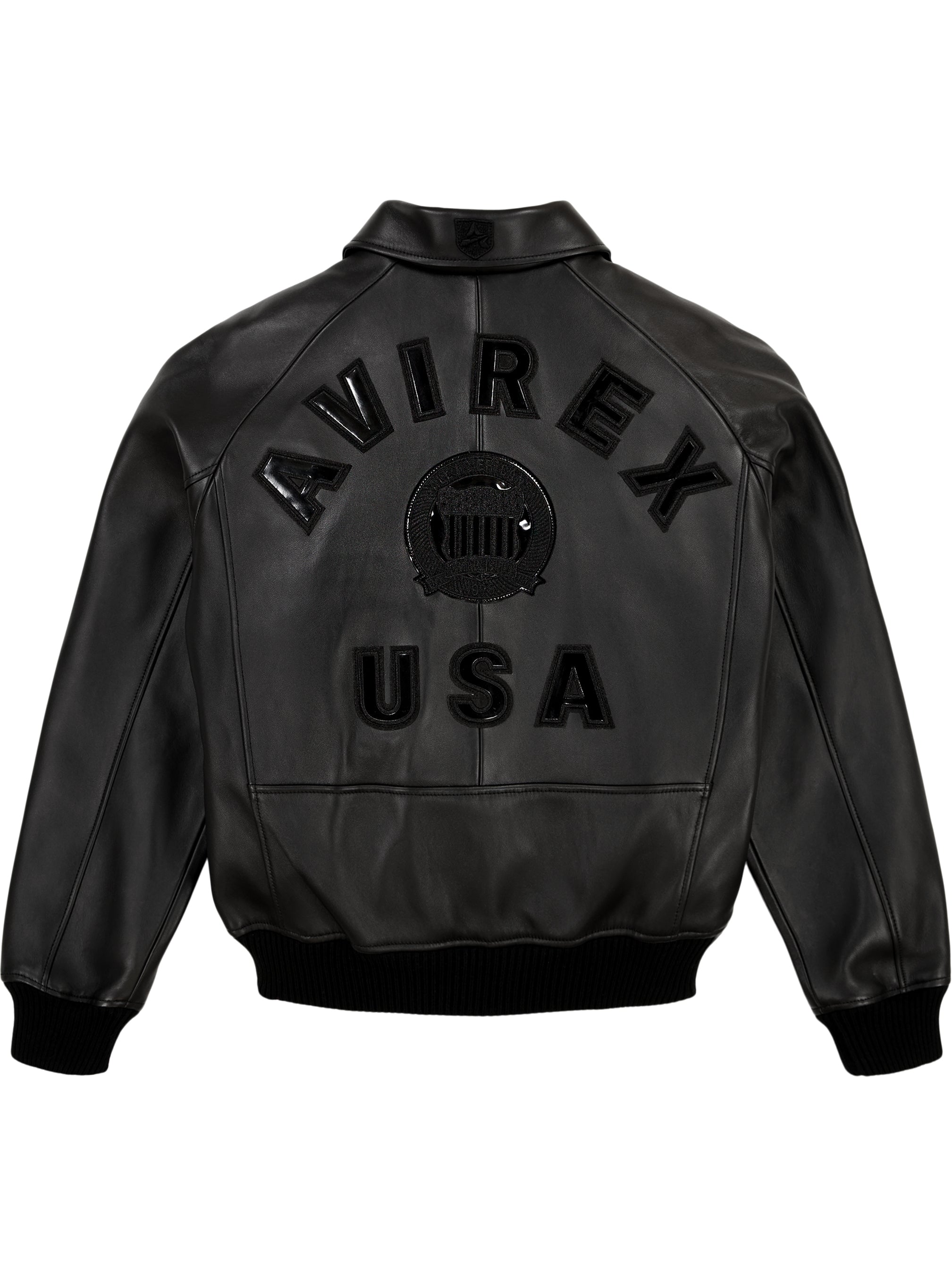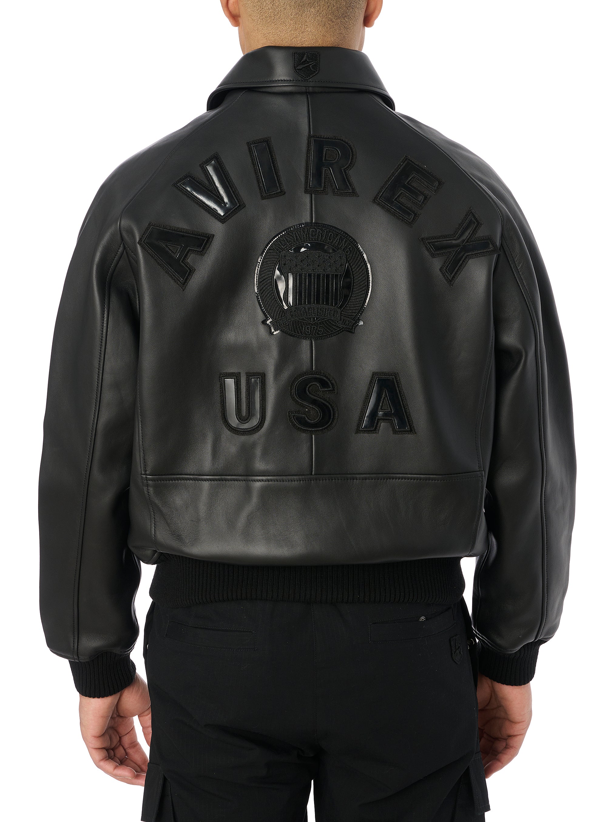 More than 40 years in the making, this original and iconic Avirex military bomber jacket is designed in 100% antique European lamb leather.