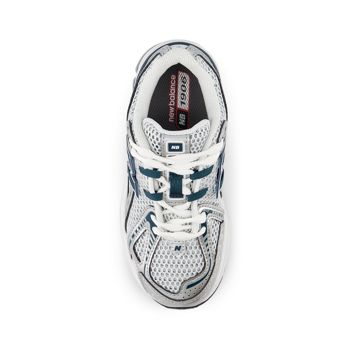 Following in the footsteps of the 2002R, another retro 2000s runner is back with fresh style on the 1906R. The shoe features silver synthetic leather layered over white mesh on the upper, with a unique navy 'N' logo that ties into the lacing system overlaid on the sides and white accents. New Balance branding hits the tongue, toe and heel, while "1906R" on the rear quarter, and "N-ergy" on the midsole fill in the rest of the details. A navy blue thatched TPU heel cage, white midsole with ACTEVA LITE cushioning in the forefoot and ABZORB SBS cushioning in the heel, Stability Web technology for arch support and a black N-ergy rubber outsole completes the look.