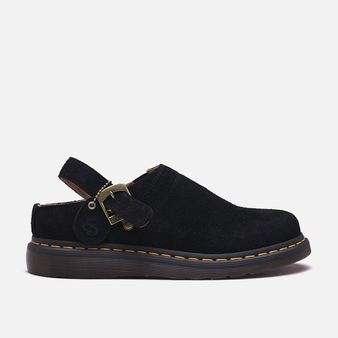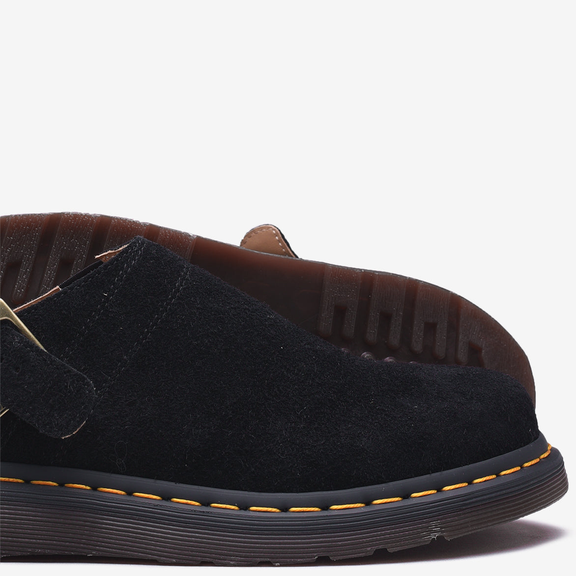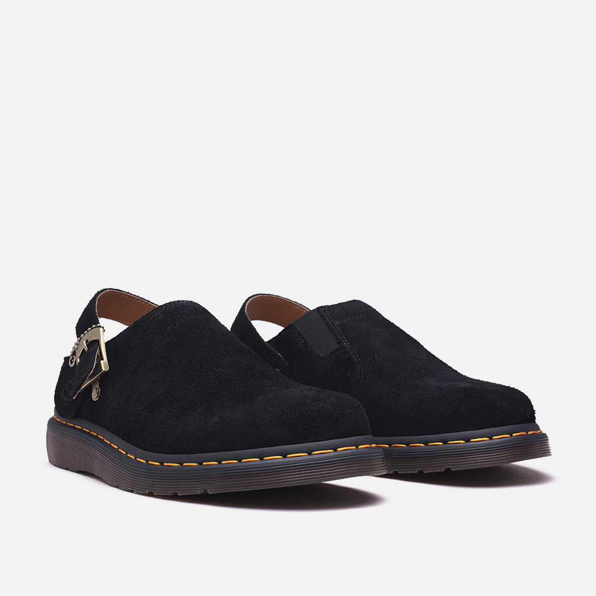 Named after a small village in Northamptonshire, the Isham Slip-On is a versatile silhouette halfway between a shoe and a sandal: ideal for any season, anywhere, any wear. This new version of the Isham is built from black suede from Leeds-based tannery C. F. Stead for a premium finish and is detailed with antique brass buckles. The slip-on stands on our classic Shore sole and is marked with our signature yellow welt stitching.