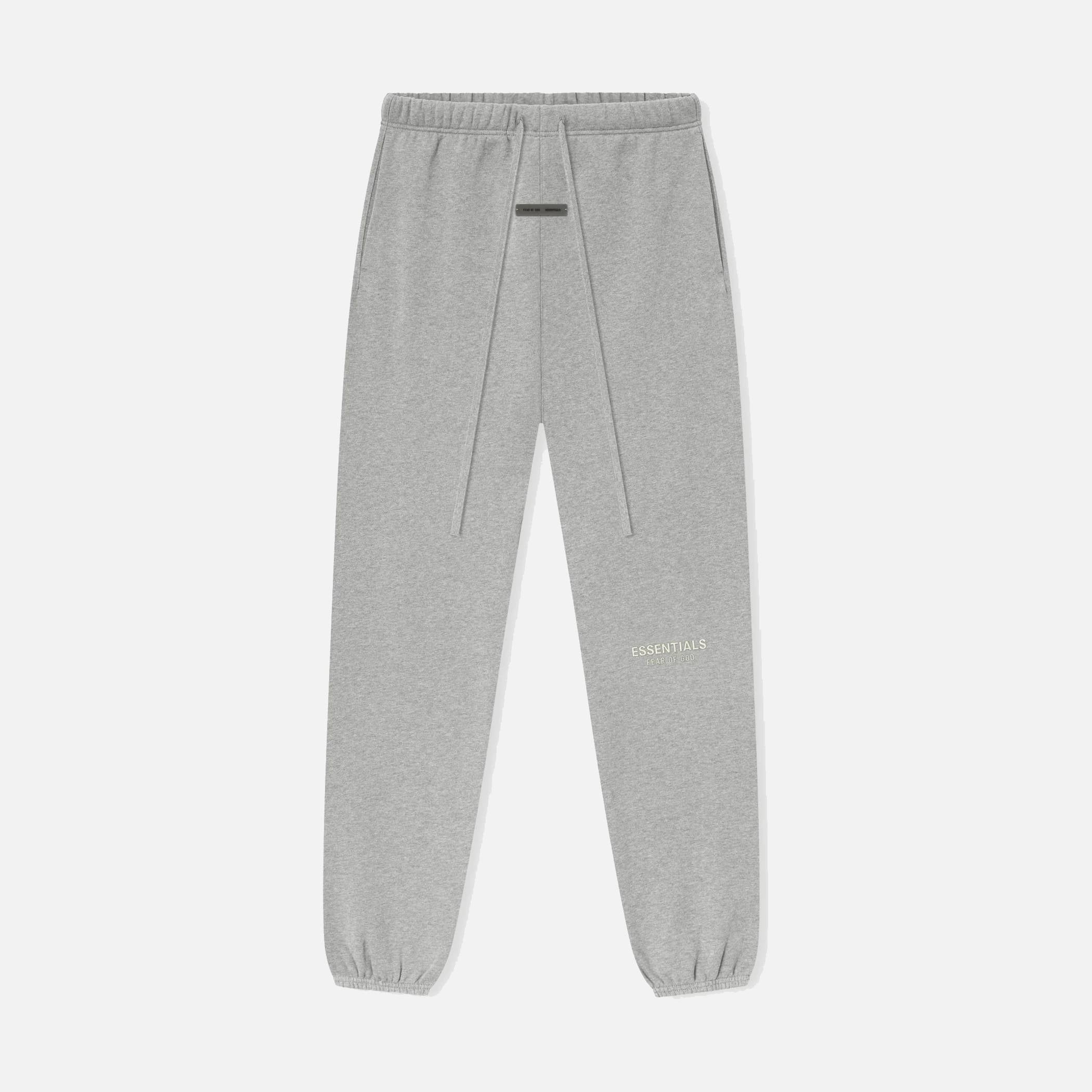 The Vintage Sweatpant is crafted from 380gsm core fleece, offering both body and structure. The vintage fit has a streamlined slim leg that resembles the original Essentials silhouettes. A new "Essentials Fear of God" beveled metallic logo is prominently branded on the leg. Additional details include an encased elastic waistband and bottom hem, elongated drawstrings, and side seam pockets. The front center showcases a the "Fear of God Essentials" rubberized label.