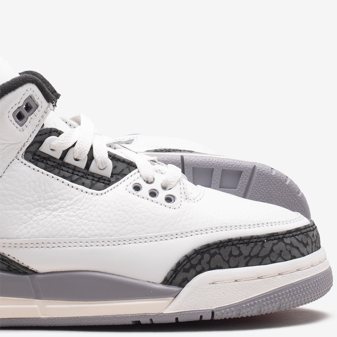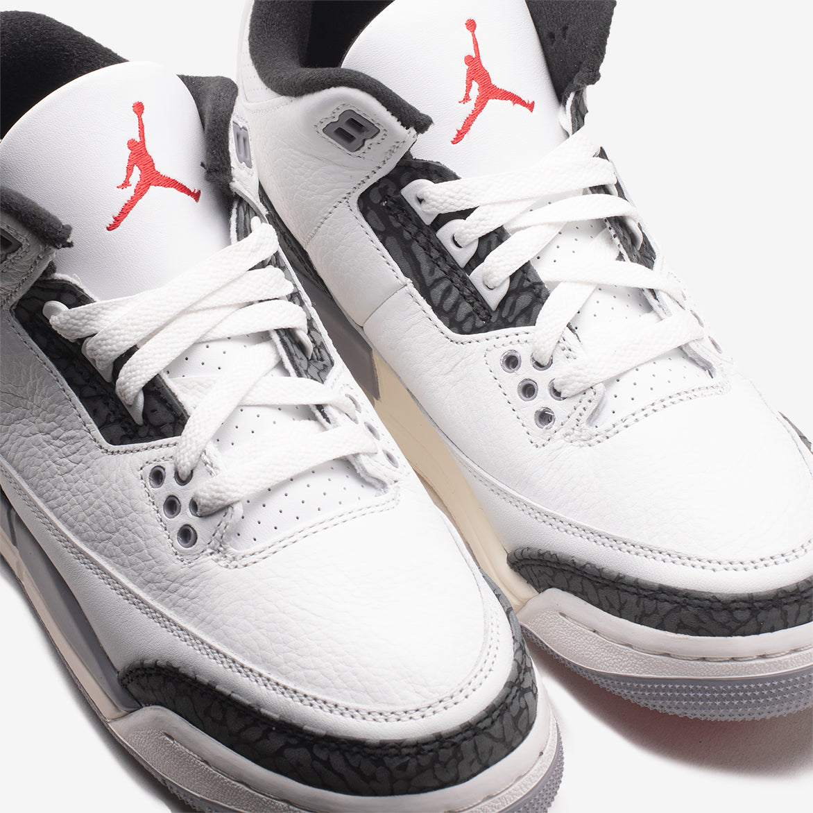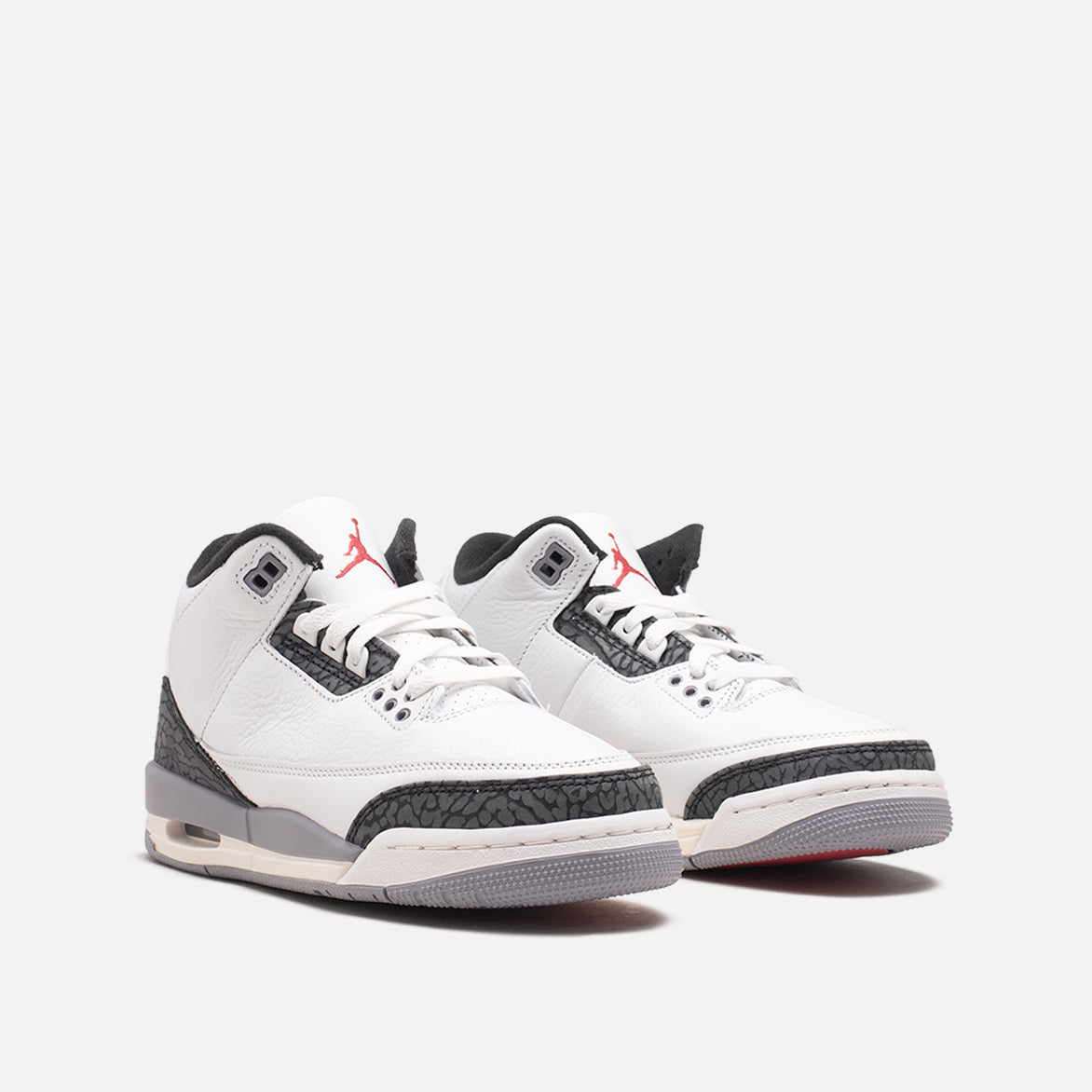Jordan Brand casts one its most iconic silhouettes in a brand new colorway that's so familiar you would swear it was an OG reissue on the Air Jordan 3 Retro "Cement Grey". The classic model keeps it about as clean as you can get with a white tumbled leather upper and black elephant print overlays on the toe, heel and eyestay. A red Jumpman pops out on the tongue, contrasting with the black Jumpman on the heel, while the familiar cement grey hue hits the mudguard, upper eyelets and outsole.