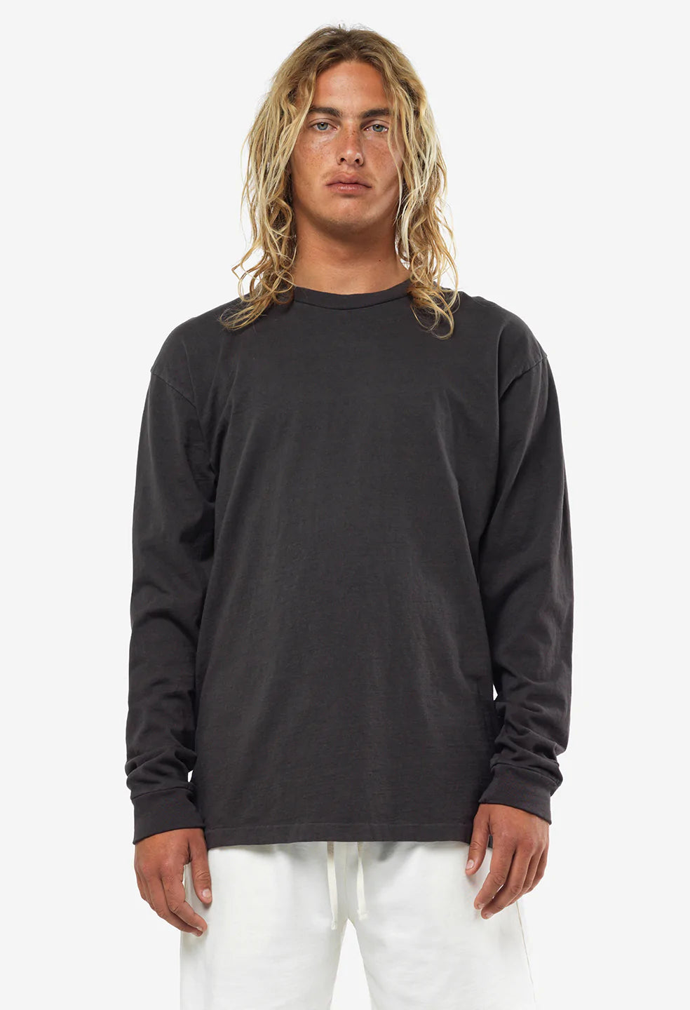 John Elliott makes clean and functional wardrobe staples with a focus on modern fits and unique fabrics. The LS University Tee is a straight hem oversize long sleeve tee made from 100% cotton that was washed and recycled. The shirt has a slightly longer cut and features blind stitch detailing at the neck, sleeves and hem. Made in Los Angeles.