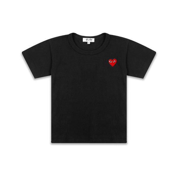Comme des Garçons PLAY is the most recognizable and accessible of CDG's numerous diffusion lines, consisting of basic tees, knits and woven shirts emblazoned with Filip Pagowski's iconic heart logo. The classic kids Logo Tee is a 100% jersey cotton tee that is the foundation of the PLAY line. It features a ribbed crew neck, straight hem and an embroidered applique of the iconic heart logo on the chest.