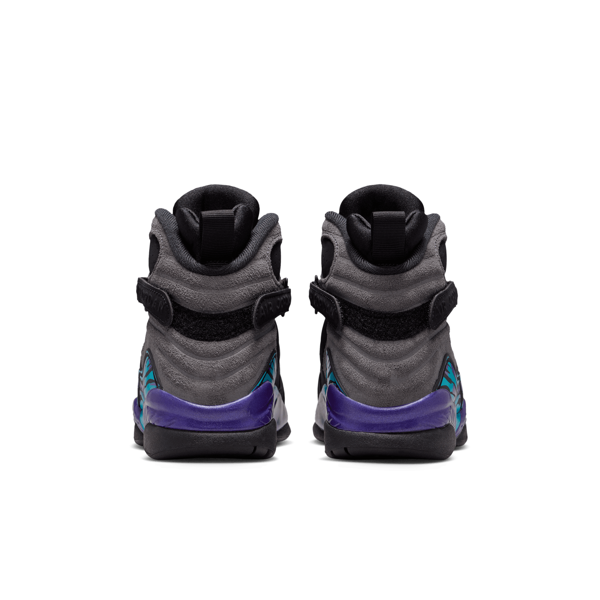 One of the most revered OG colorways is back on shelves for the first time in ten years with the return of the Air Jordan 8 Retro "Aqua". Back in effect for the first time since 2015, this new version of the "Aqua" stays true to the original with a black and flint grey nubuck upper augmented with a totally `90s aqua and concord color splash on the mudguard and midsole. Classic Air Jordan 8 elements like the multi-color chennille tongue logo and the cross straps are still as crucial as they were in 1993, while a multi-color patterned insole and outsole finish off this crucial reissue.