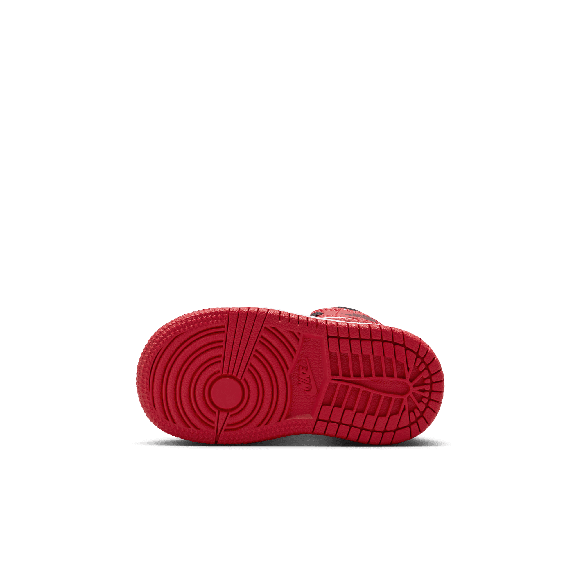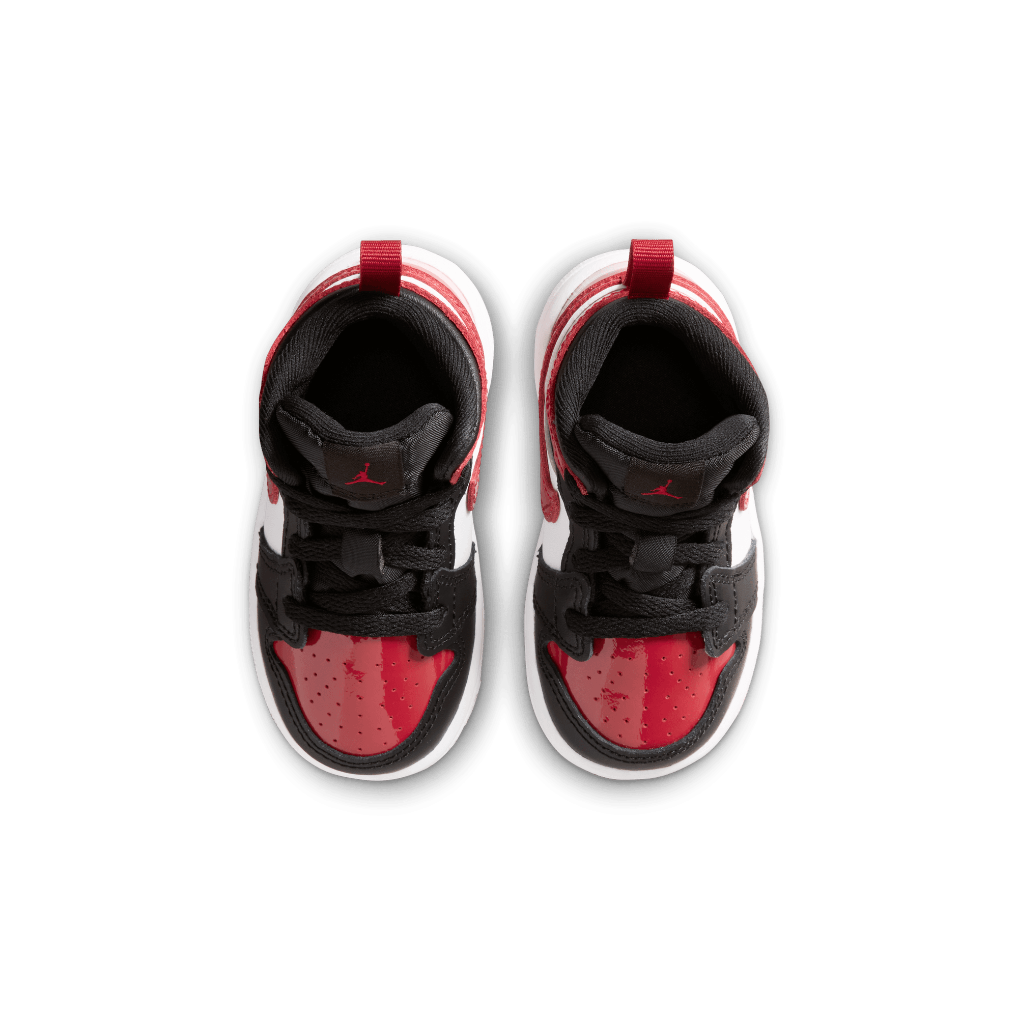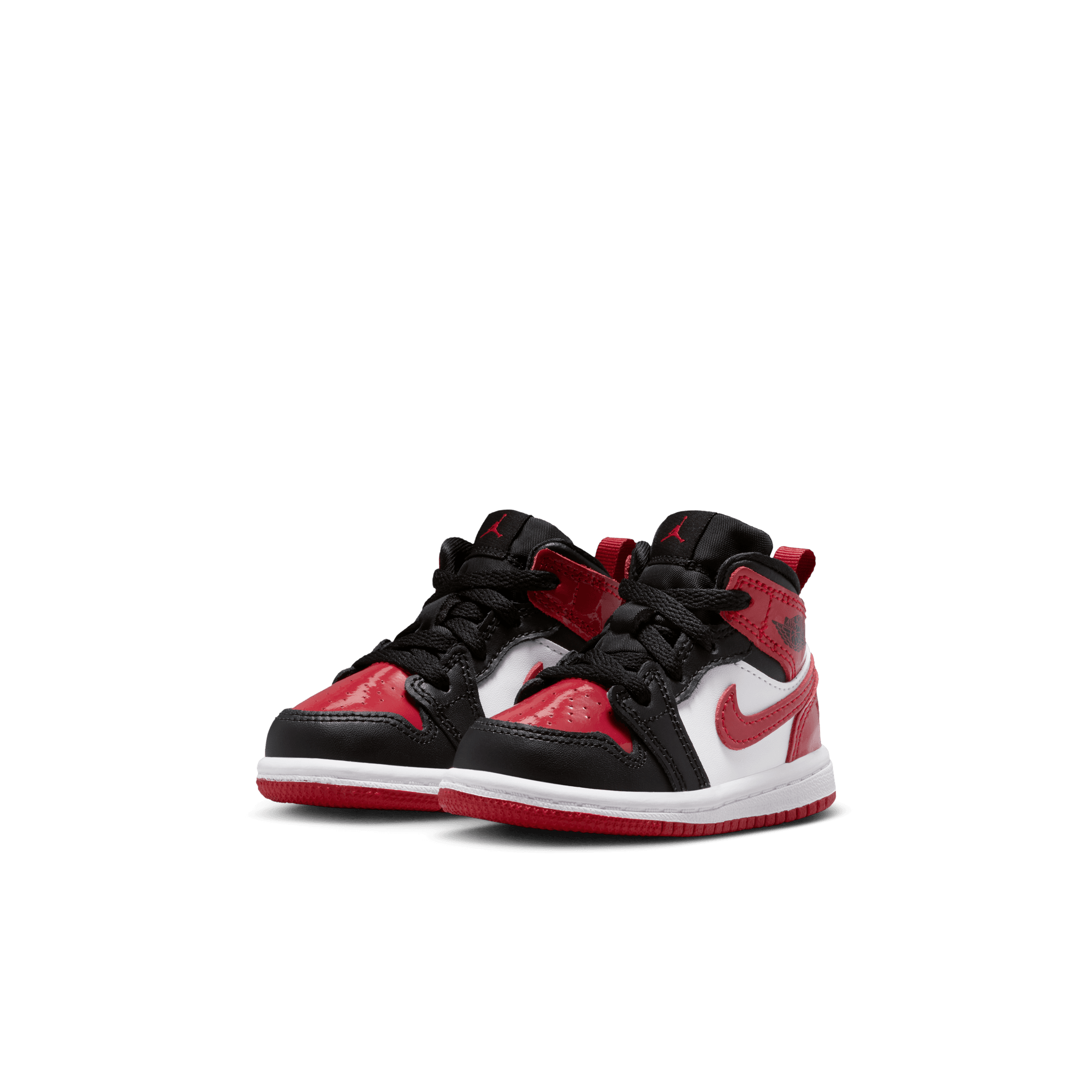 This SE version of the classic silhouette dives back into the ever-present Bulls aesthetic a shiny twist on the Air Jordan 1 Mid SE "Patent Bred Toe". The classic style adds luxurious red patent leather to its white and black smooth leather upper, mimicking the blocking of the iconic "Bred" on the toe. It's accented with a black tongue tag, laces and lining, talong with black Wings logo on the ankle. A white midsole and red rubber outsole finish off the look of this AJ1 Mid.