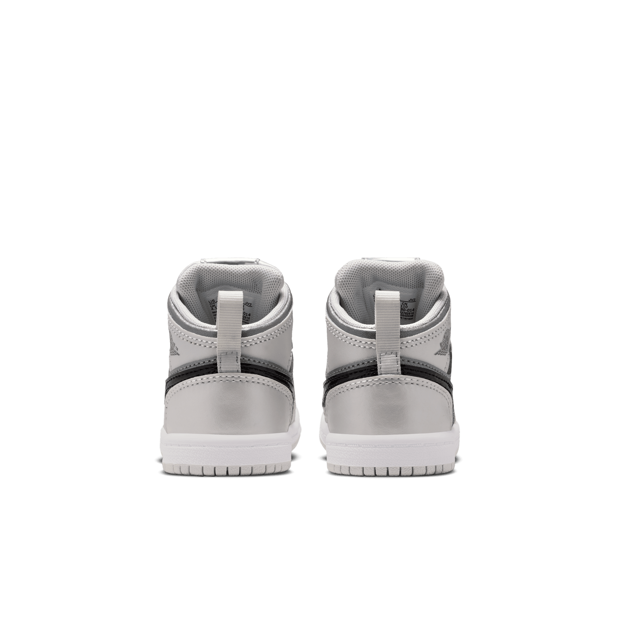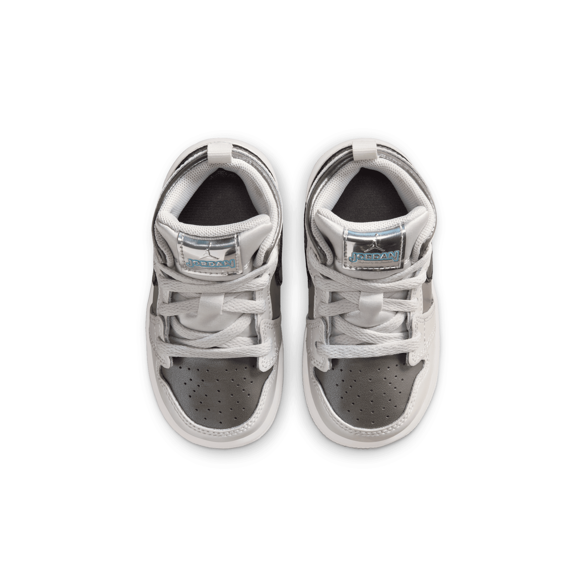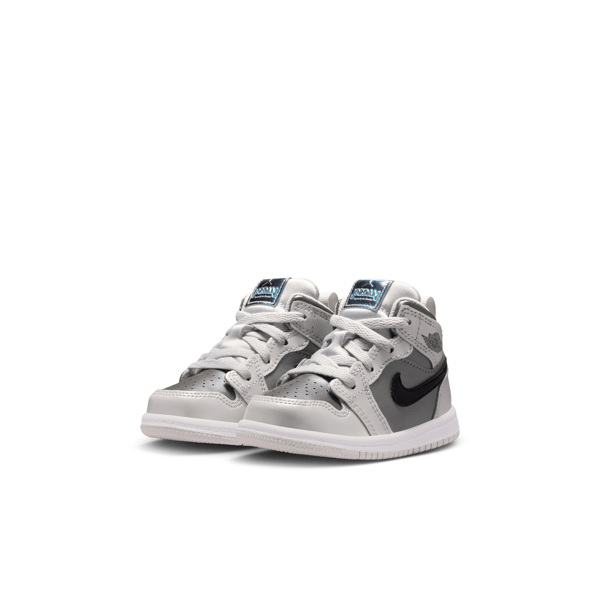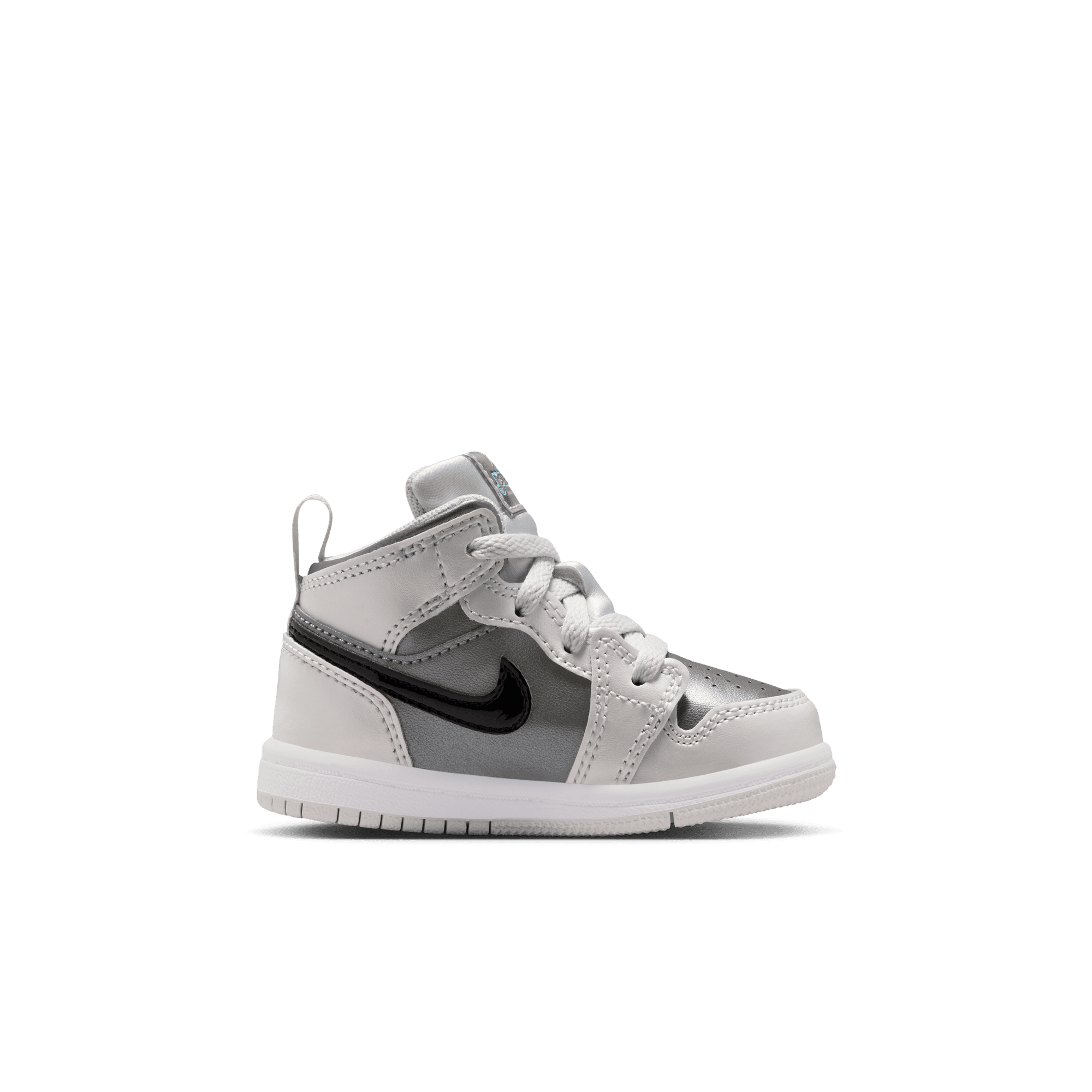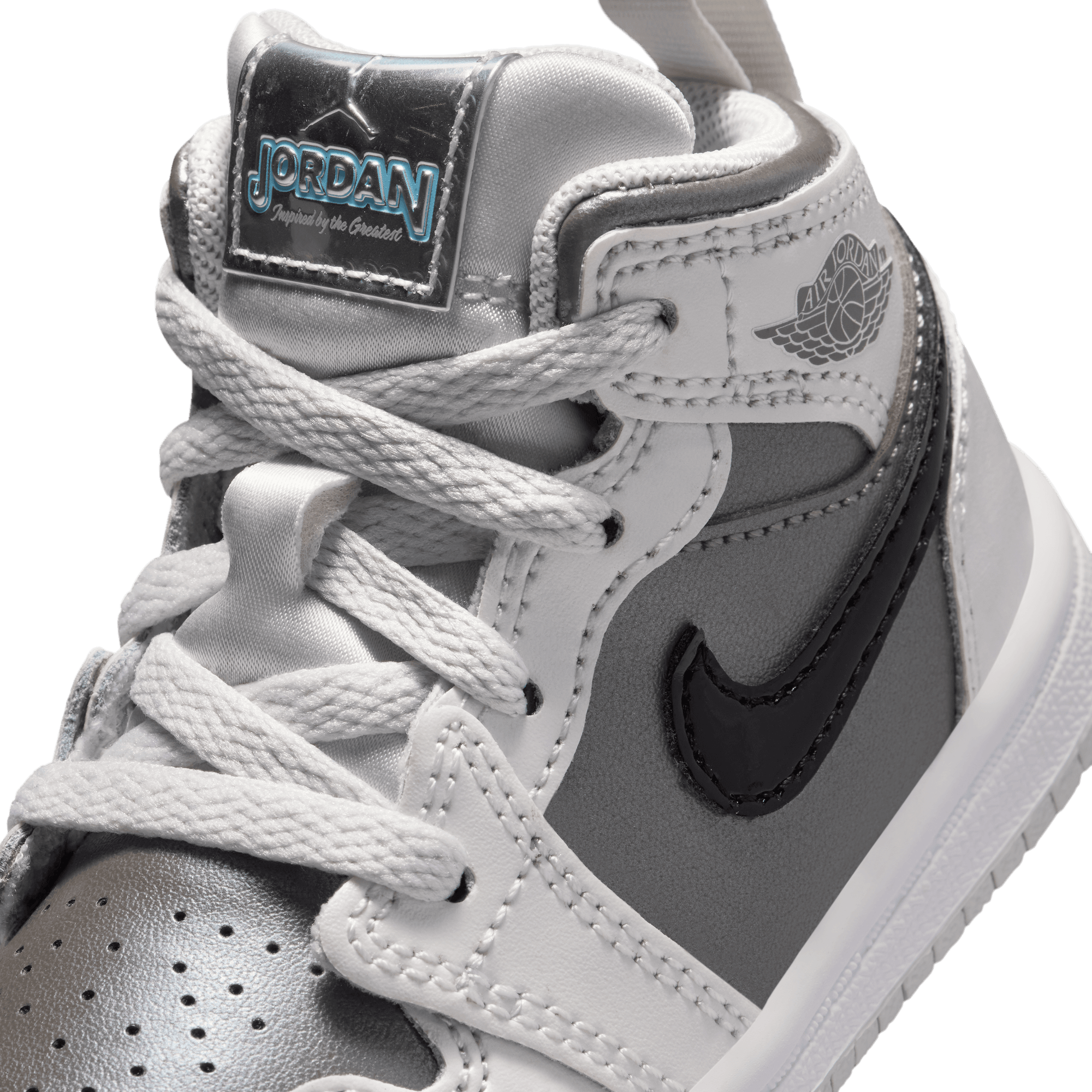 Jordan Brand cooks up a beautifully refined mid top version of MJ's debut signature, the Air Jordan 1 Mid SE "Photon Dust/Blue Chill". Arriving as part of the "Inspired By The Greatest" series of kids exclusive retros, the shoe is built from a smooth white leather upper with metallic dark grey underlays on the sides and toe, and a black patent leather swoosh. A metallic silver "Inspired by the Greatest" tongue tag is the standout detail, while a a grey Wongs logo stamped on the ankle, white midsole and light grey outsole finish off the look.