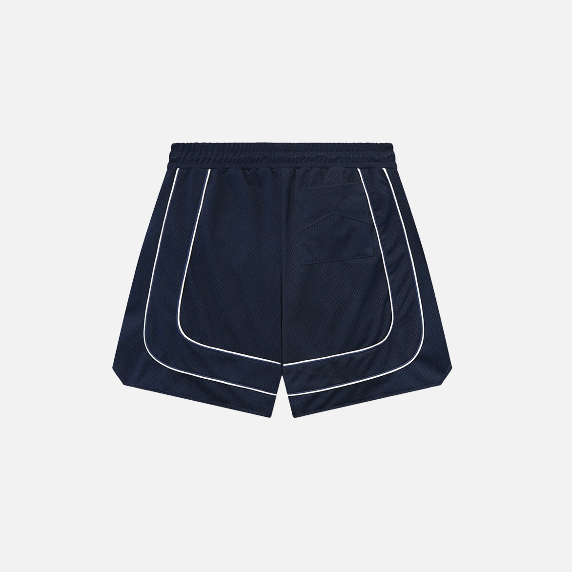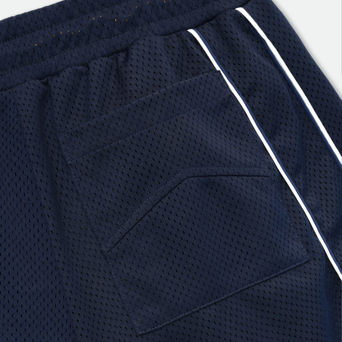 Crafted from premium poly mesh, these collegiate logo shorts feature a distinctive logo running across the front legs. Features a singular pocket on the back for added functionality. Equipped with extended drawstrings in our signature mustard tone. 100% poly.