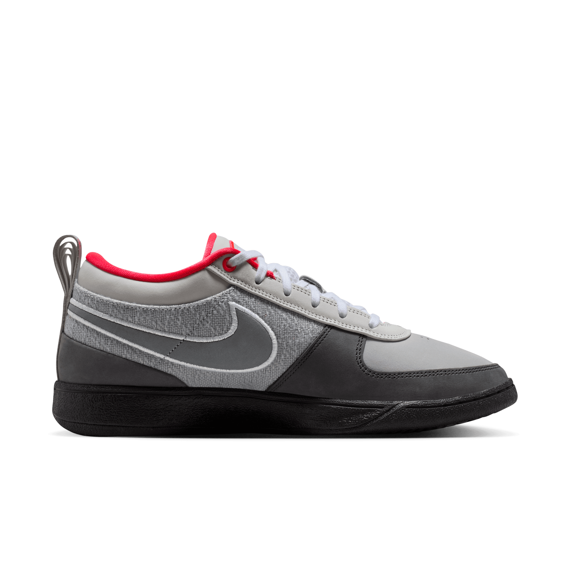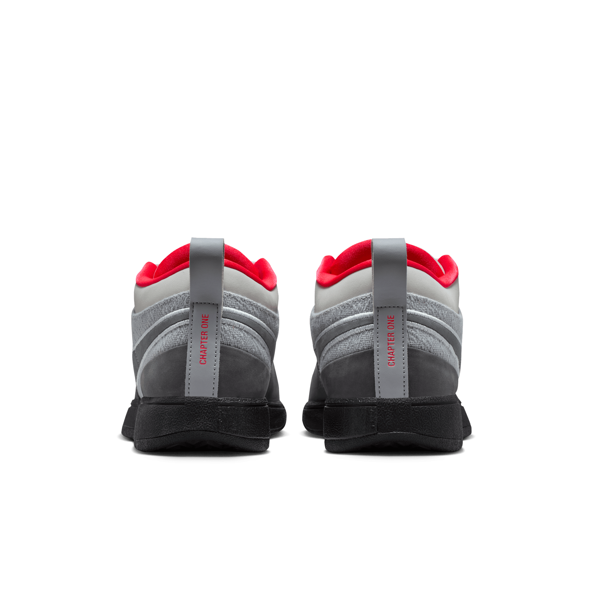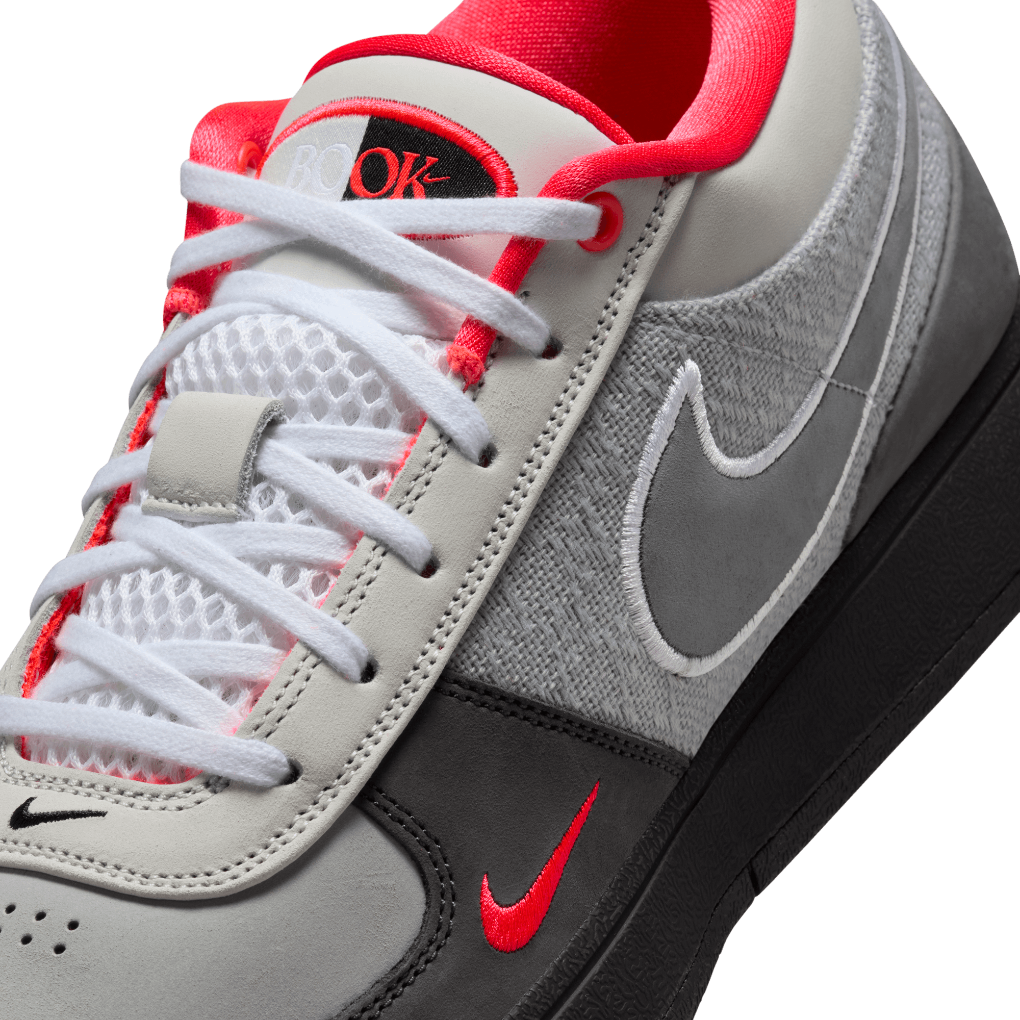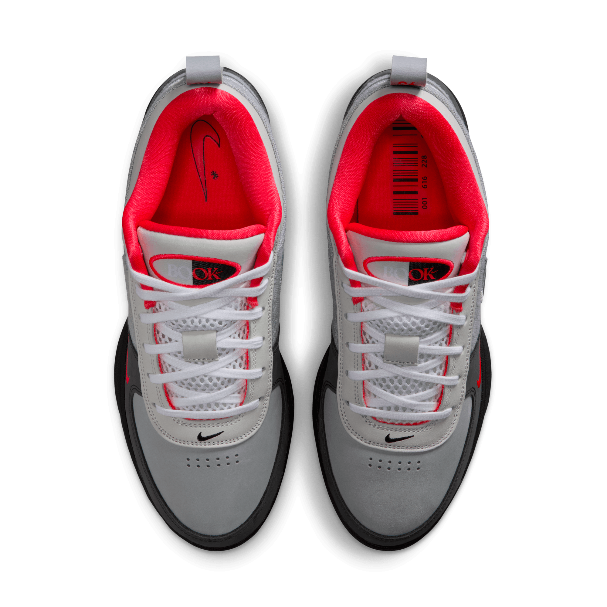 The Book 1 "95 Solar Red", the next colorway of Devin Booker's debut signature shoe, is a tribute to his dad's favorite all time sneaker- the Air Max 95 "Solar Red". Inspired by the recently reissued OG colorway, this version hues close to Air Max original with a light to dark grey nubuck upper, grey twill side panel overlay, grey nubuck swoosh and solar red accents on the lining, trim and branding. Designed with his game in mind, the Book 1 pairs a Zoom Air unit in the heel with a plush black Cushlon 2.0 midsole and rubber outsole to create a responsive, broken-in feel from the jump. The design is filled with personal details like "Chapter One" embroidered on the heel and his family's initials on the inside of the tongue in black. Book branding on the tongue tag, a barcode with his jersey number and the zip codes for Phoenix and his hometown of Grand Rapids on the insole complete the design.