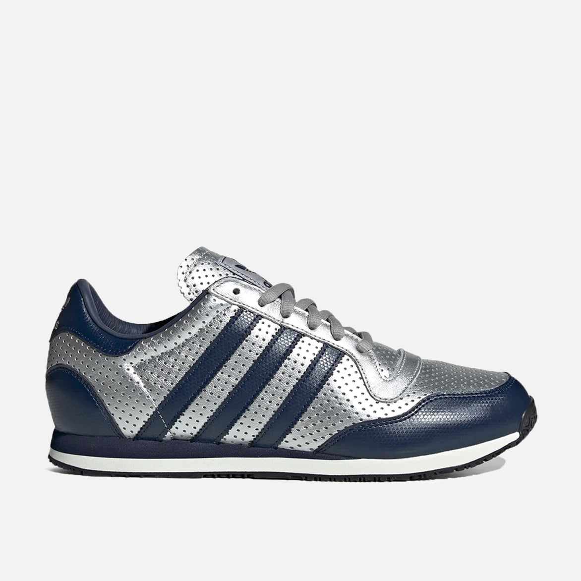 Rediscover a retro classic made new again with the adidas Galaxy OG. These shoes blend iconic '70s style with modern comfort, featuring a silver, premium perforated synthetic leather upper with navy leather overlays that wraps your feet in breathability. It sits on EVA midsole that capped with a black rubber outsole, while Trefoil branding on the tongue and heel, a full leather lining and silver laces complete the design.