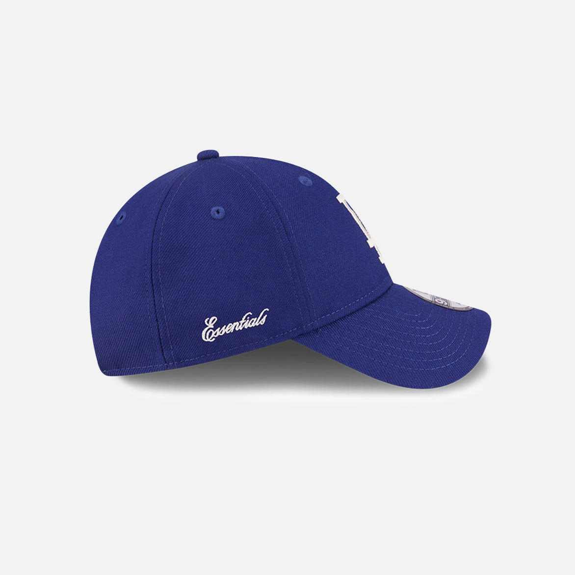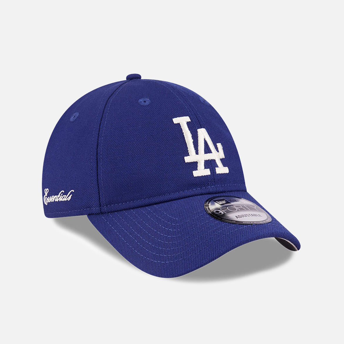 The Fear of God Essentials x MLB LA Dodgers 9Forty adjustable cap features an embroidered Dodgers logo at the front and a Fear of God label on the adjustable strap at the back. Tonal New Era embroidery on one side, and white Essentials embroidery on the other. Made from 100% wool with a grey undervisor.