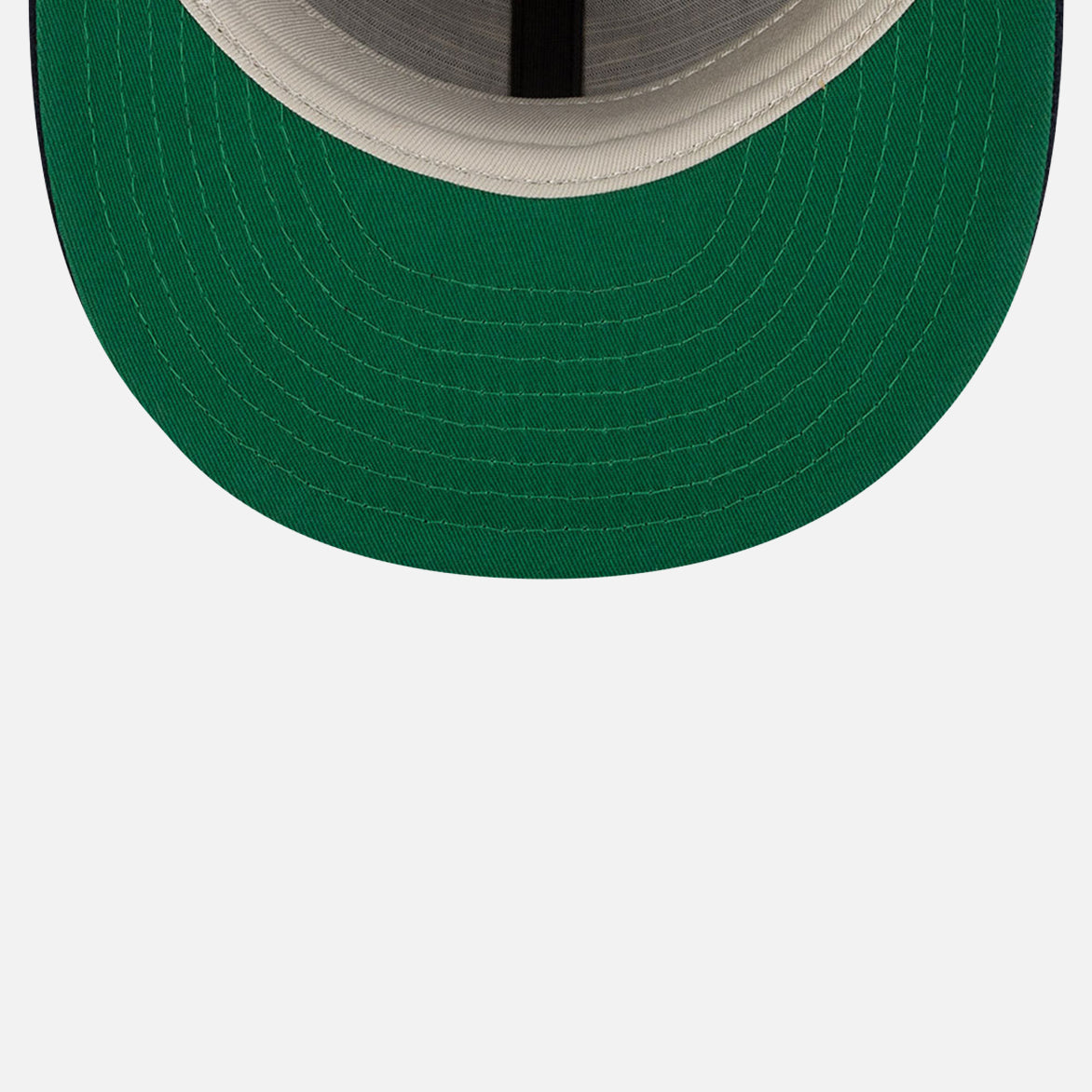 The Fear of God Essentials x MLB New York Yankees Wool Retro Crown 59FIFTY Fitted Cap features an embroidered Yankees logo on the front panels, a New Era script logo at the side, and a Fear of God label at the back. Its heavily textured wool construction and classic green undervisor pay tribute to vintage pro baseball caps.