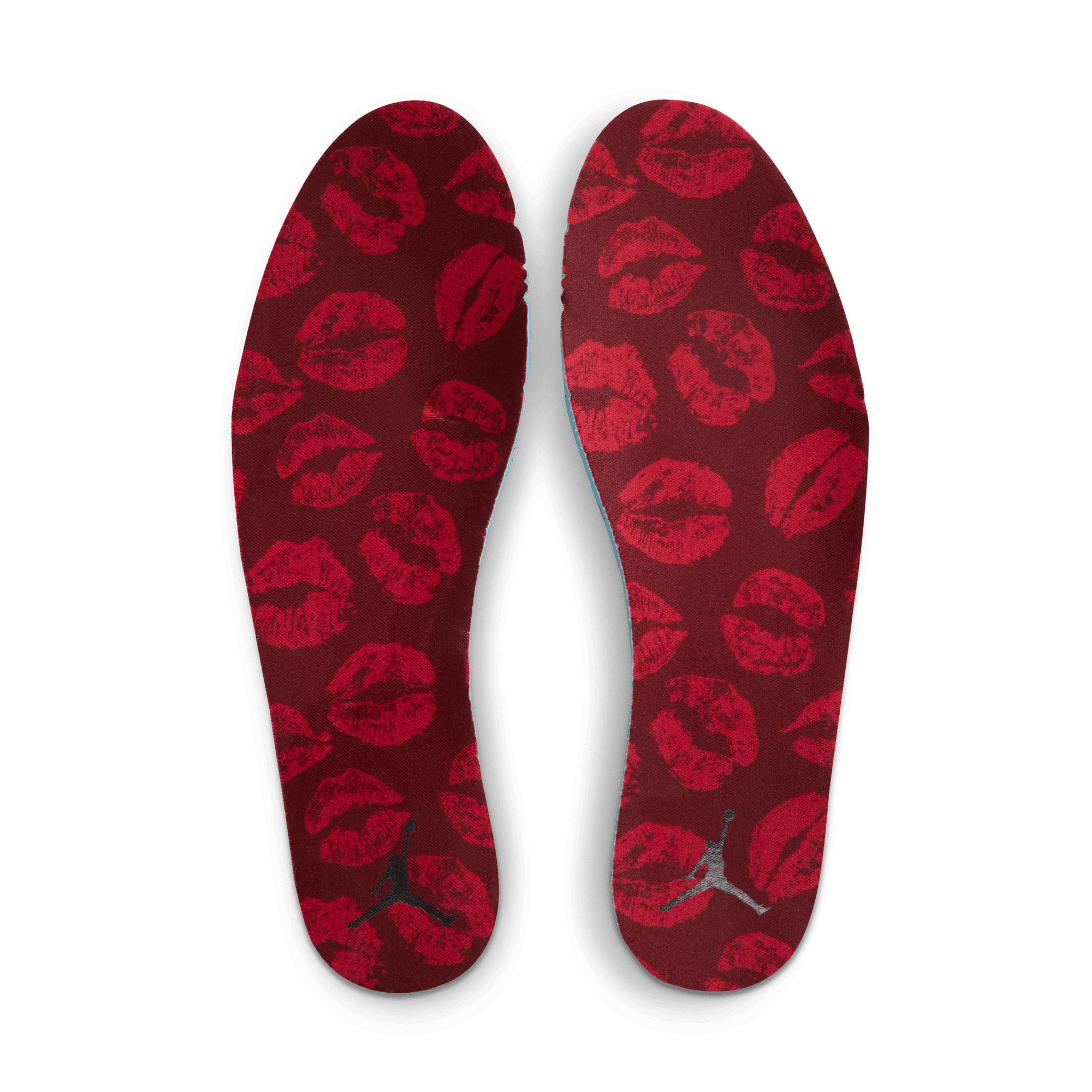 Jordan Brand is in the mood for love on this low top women's exclusive of MJ's debut signature, the WMNS Air Jordan 1 Low SE "Valentine's Day". The classic silhouette goes for a deep red look with burgundy nubuck on top of a smooth burgundy leather upper, with a bright red tumbled leather swoosh popping on the sides. A red Jumpman on the tongue matches the lining and swoosh, while the Valentine's theme is carried home with lipstick graphics on the insoles and on the right heel opposite the Wings logo on the left heel, as well as all over the shoebox.