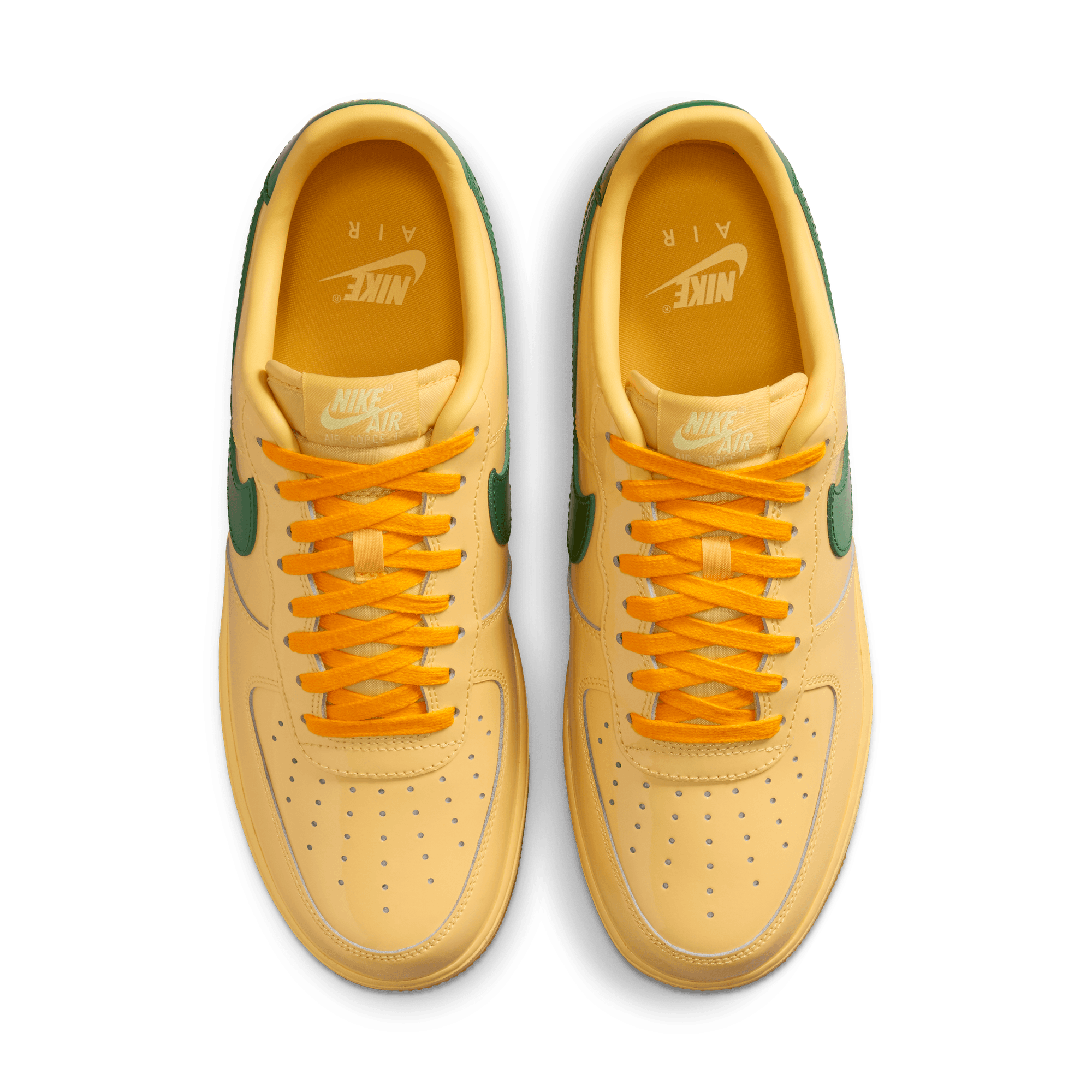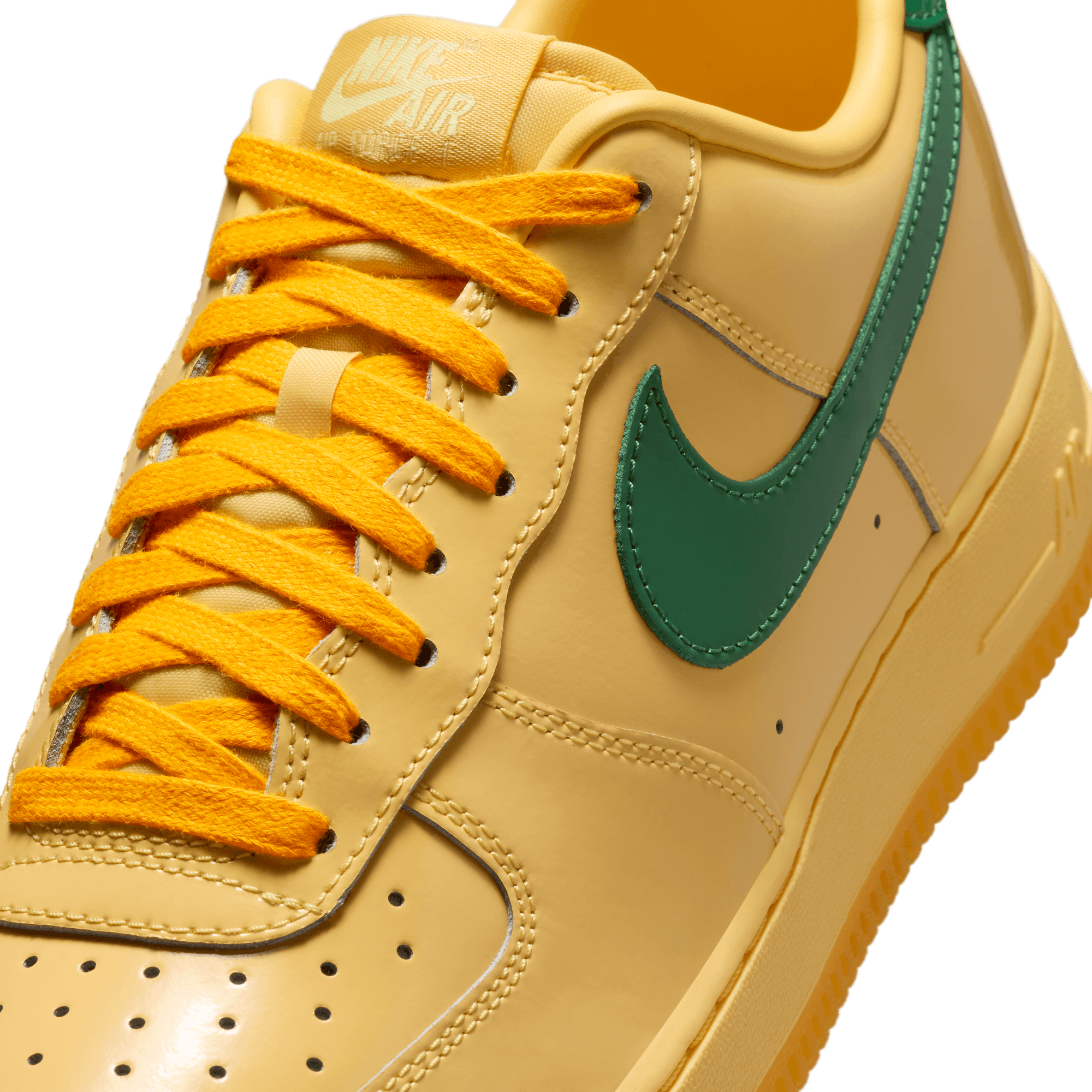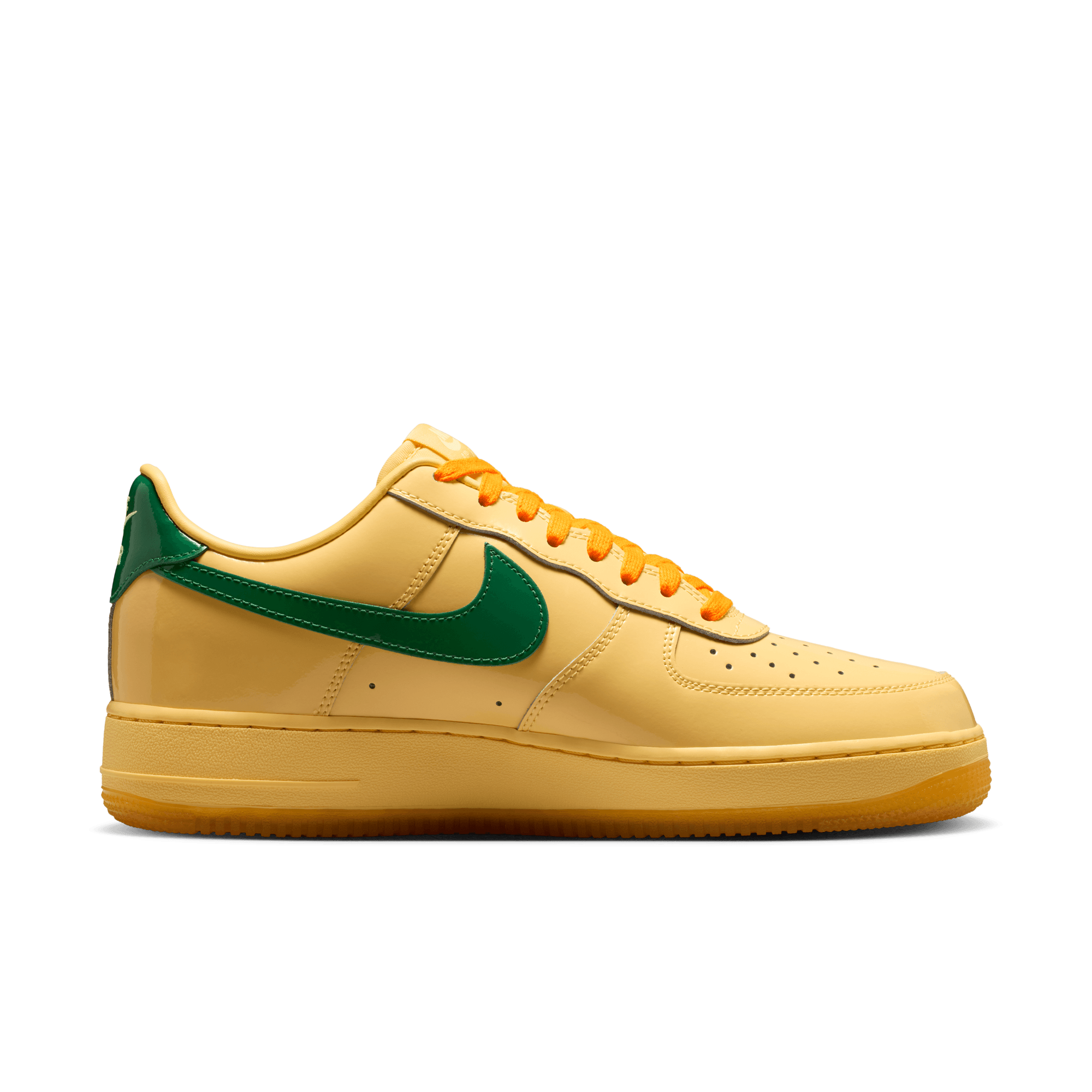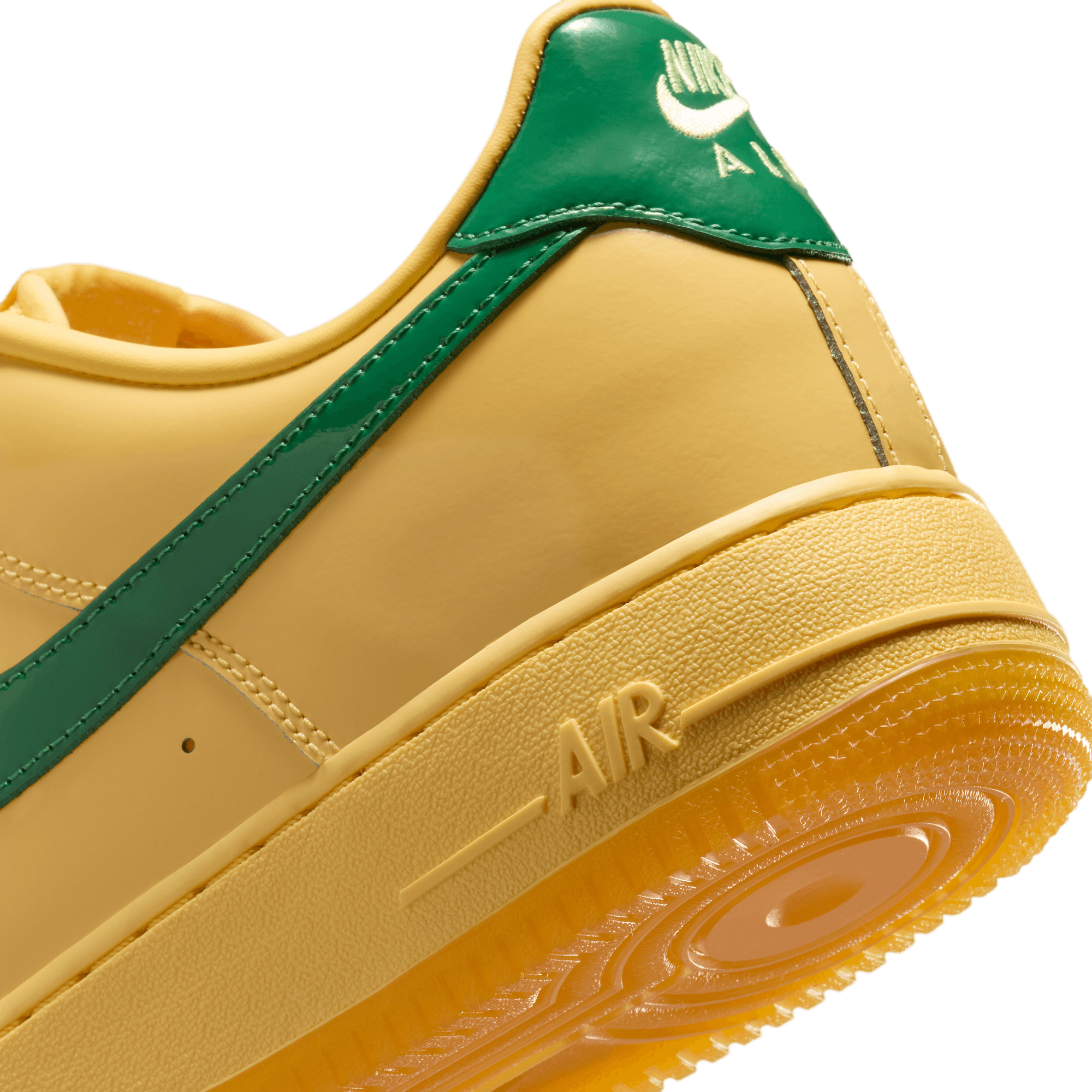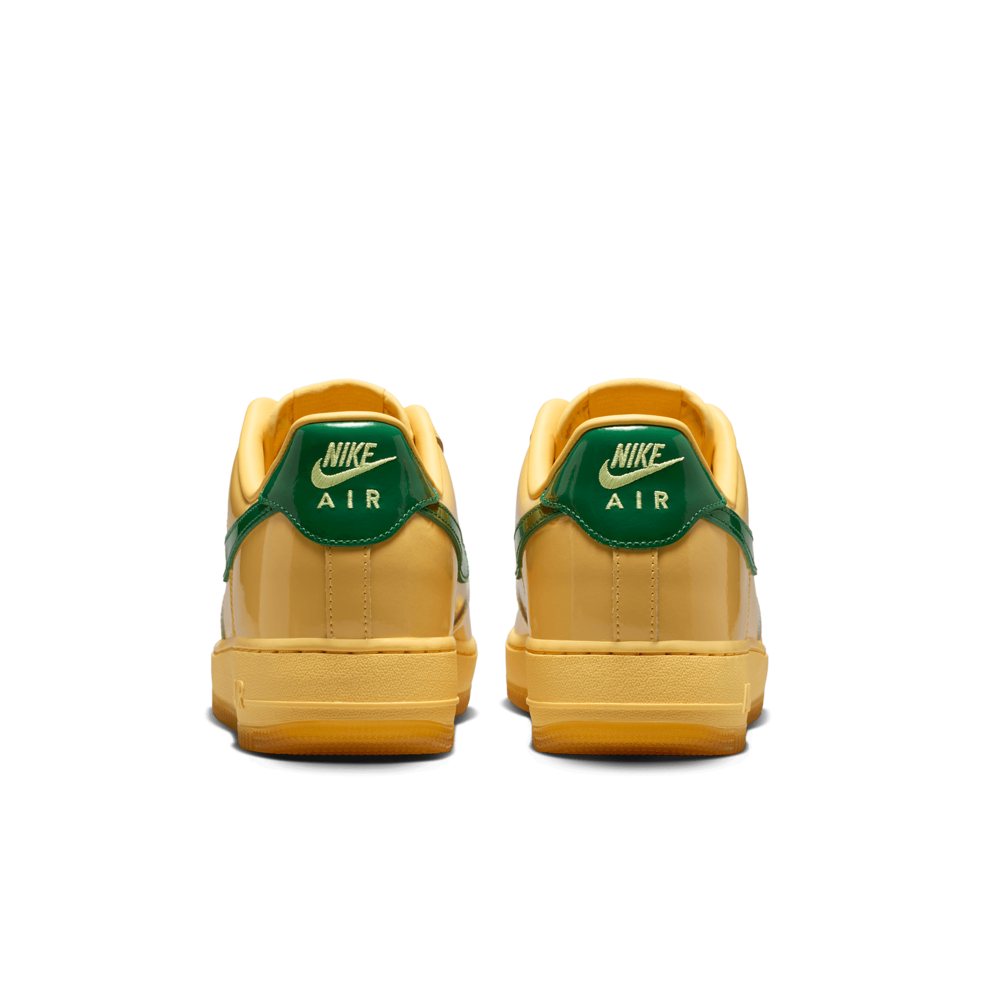 Nike is bring back some early-aughts energy to their most iconic silhouette with the release of the Air Force 1 Low QS "Patent Pack". Arriving just in time for shorts season, the pack consists of three colorways, including this "Topaz Gold" version. First appearing on AF1's during the early 2000s, patent leather returns in a beautiful yellow shade covering the entire upper, with green patent hitting the swoosh and heel tab. Light yellow branding hits the tongue and heel, while light orange laces and a yellow translucent sole unit complete the look.