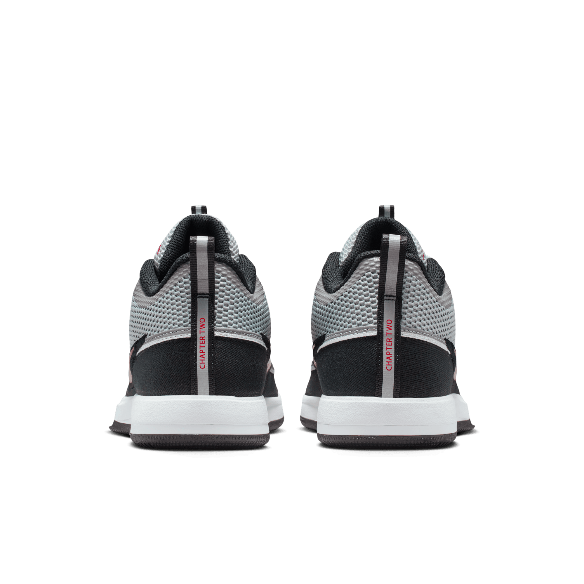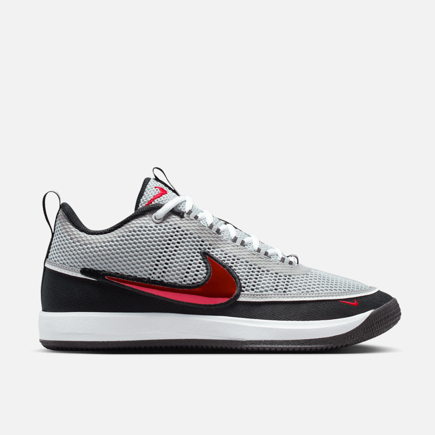 Devin Booker is back with the followup to his mega-successful debut signature, taking cues from a classic Nike runner on the Book 2 "Spiridon". Copping the silver/black/red makeup of the Air Zoom Spiridon's OG colorway, it’s constructed from a low-cut silver mesh upper adorned with the signature metallic red swoosh and wrapped in a black canvas mudguard. A midfoot webbing system offers snug, soft security for quick cuts and sudden Book-like jabs and pivots. Forefoot Air Zoom gives your first step a turbo boost, while Cushlon 3.0 offers coast-to-coast cushion and a super-charged ZoomX sockliner provides responsive step-in bounce. Reflective 3M detailing, "Chapter 2" branding on the heel and a rubber outsole with a tread pattern inspired by both the AF1 and his team, the Suns, completes the design.