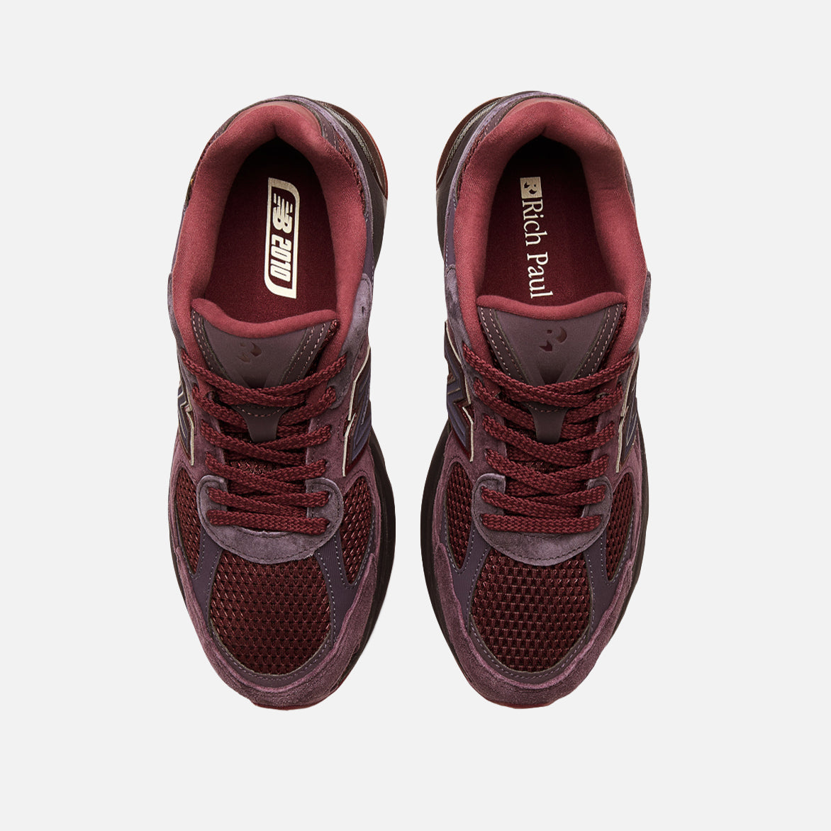 NBA agent, media mogul and LeBron's BFF, Rich Paul trains his creative eye on the ABZORB 2010 for his latest New Balance collaboration, the Rich Paul x New Balance ABZORB 2010 "Plum Brown". The shoe combines the excitement of a progressive, all-new style with a sense of the familiar. In Paul's take, sturdy leather is laid over diamond mesh. The shoe is outfitted in a soothing blend of deep plum and burgundy, creating a warm and alluring display. These hues are echoed in the capsule collection's apparel pieces and accessories, for a harmonious head-to-toe look. The segmented ABZORB sole unit, a signature feature of several 2000s-era fan favorites, adds more expansive proportions, to become the centerpiece of this new design.