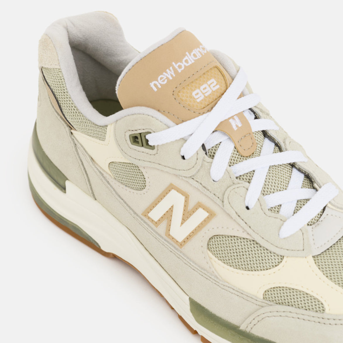 New Balance is bringing an ultra clean edition of a core classic for their summer 2025 lineup on the 992 Made in the USA "Olivine". The heritage runner straddles the line between performance and lifestyle, and features a premium cream and mint suede and light olive mesh upper with cream leather accents, white-over-tan "N" overlays on the sides and a translucent green TPU heel clip. The shoe sits on an olive and white ABZORB midsole that provides excellent cushioning and energy return, while New Balance branding on the tongue, heel and insole, embroidered USA on the heels, white laces and lining, and a gum rubber outsole finish off the design. Made in the USA.
