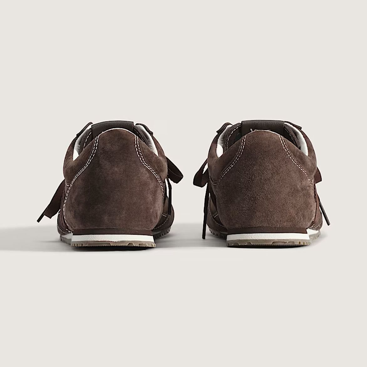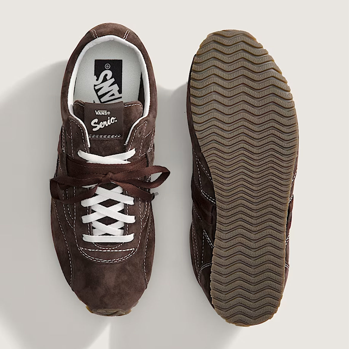 The LX Super Lowpro Trainer draws from Vans’ 1980s archives—a time defined by bold design and forward movement. Its low-profile, brown suede upper blends comfort and control, with the iconic Sidestripe in a tonal shade with contrast stitching and an interchangeable dual lace wrap adding a fresh layer of detail and customization. Sitting on a low profile EVA midsole, OrhtoLite foam insole, and 'Serio" branding on the tongue, this trainer bridges retro styling with everyday wearability, proving that timeless design always moves forward.