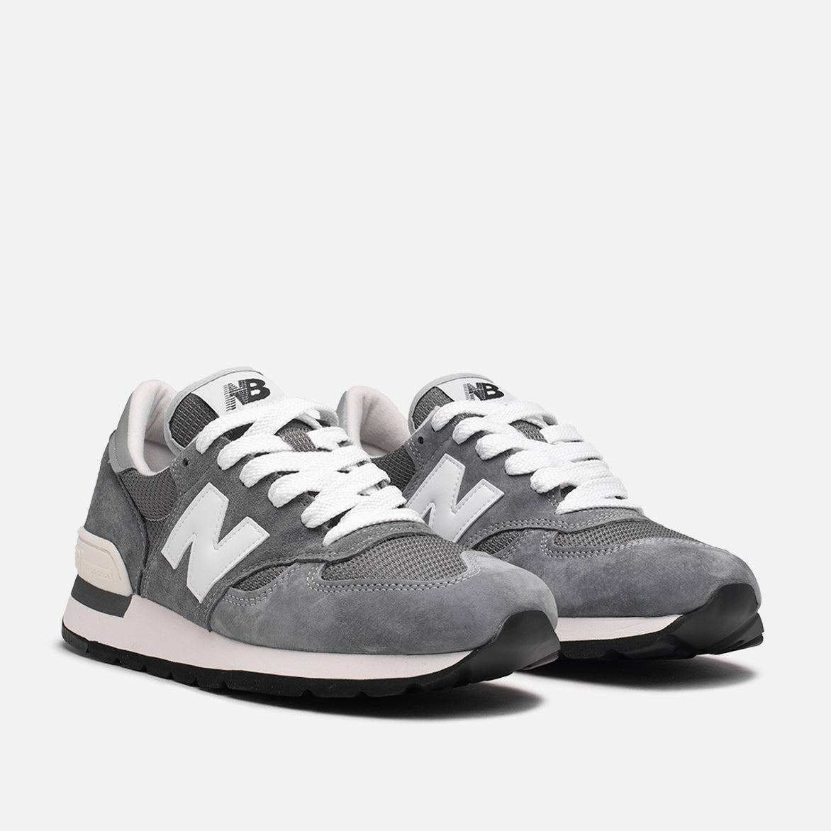 New Balance celebrates the foundation of their core line of running silhouettes with this classic grey and white version of the original 990 model, the Made in USA 990V1. Four years in the making, the 990 was the first running sneaker to top $100 when it debuted in 1982, and it is not hard to see why. This edition features premium grey pigskin suede and tonal mesh underlays on the upper with a white leather N logo on the side and a silver leather heel tab. Grey branding on the tongue and heel, and an off white TPU heel clip finish off the details, while a white ENCAP foam midsole and black rubber outsole complete the iconic design.