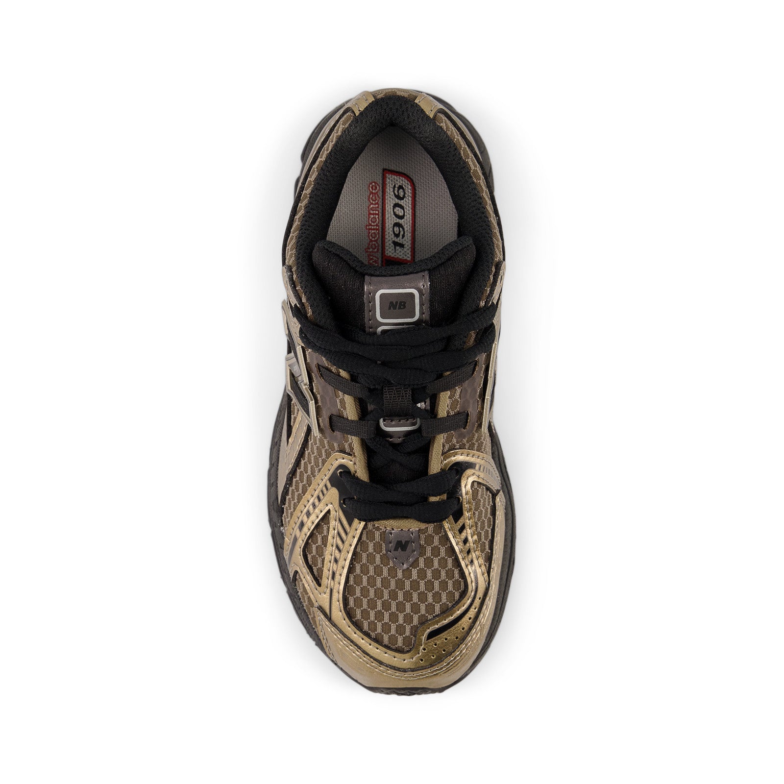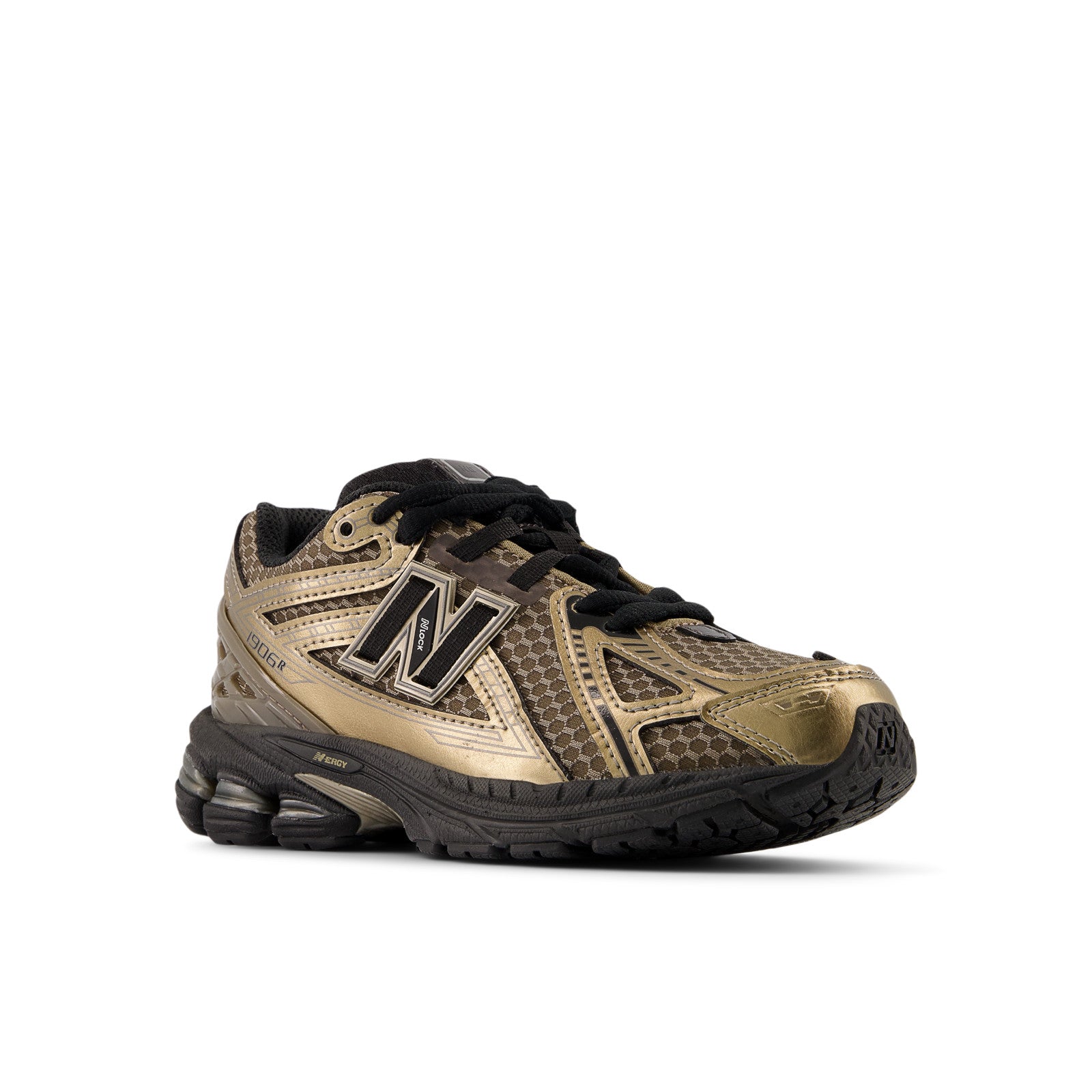 Following in the footsteps of the 2002R, another retro 2000s runner is back with fresh style on the 1906R. The shoe features gold synthetic leather layered over brown and black mesh on the upper, with a unique black 'N' logo that ties into the lacing system overlaid on the sides and black accents. New Balance branding hits the tongue, toe and heel, while "1906R" on the rear quarter, and "N-ergy" on the midsole fill in the rest of the details. A brown thatched TPU heel cage, black midsole with ACTEVA LITE cushioning in the forefoot and ABZORB SBS cushioning in the heel, Stability Web technology for arch support and a grey N-ergy rubber outsole completes the look.